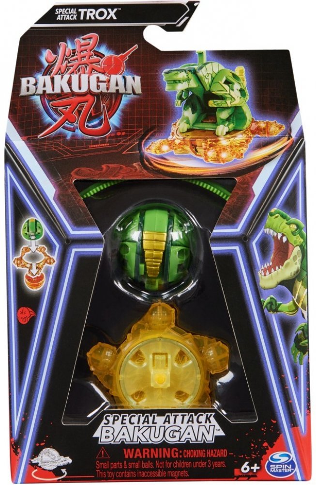 Bakugan přináší více zábavy než kdy dřív díky novým i již známým postavám, úžasným detailům a novým klanům Bakugan pro úžasné hraní a strategické bitvy. Každý Bakugan obsahuje speciální kód pro použití v online hře Roblox pro nové možnosti hraní a interakce. Zlepšete strategické hraní s balíčky Bitevní Aréna a Tréninkový balíček (každý se prodává samostatně). Zařaďte všechny nové populární hračky Bakugan mezi své oblíbené sběratelské předměty, včetně Bakugan balení Speciální útok a Bakugan startovací sada Speciální útok (každý prodáván zvlášť) a vytvořte elitní tým. Použijte plechový box Baku-Tin (prodává se samostatně) nebo bakuganský kufřík ideální pro uložení všech bojových postav a karet při další bitvě Bakugan.