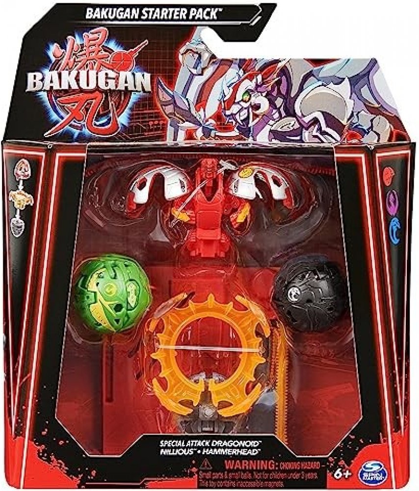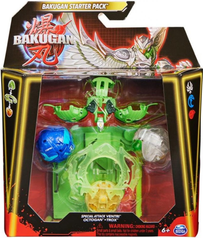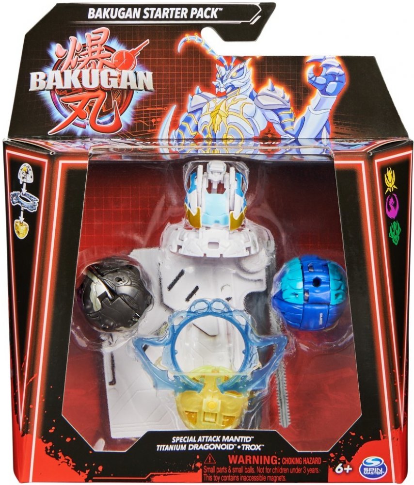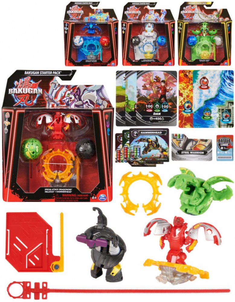 Spin Master Bakugan - startovací sada SPECIÁLNÍ ÚTOK S6 více druhů. Startovací sada se 3 Bakugan bojovníky ze série 6. Balení obsahuje 1 Bakugan Speciální útok (rotace), 1 Kruh, 1 tažné lanko, 2 Core Bakugan, 3 karty charakteru, 2 Gate karty, 1 karta speciální útok, 3 Brawler karty, instrukce a pravidla. Vhodné od 6 let.