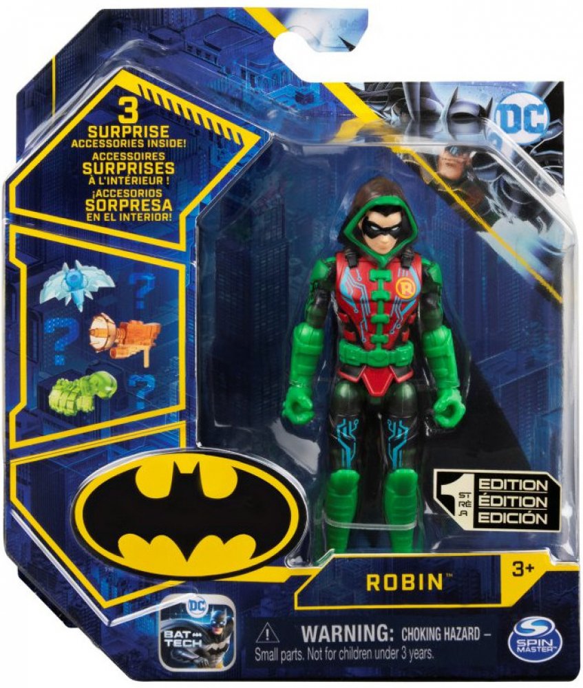 Batman v černém nebo šedém plášti je tentokrát vyroben jako pohyblivá figurka. Děti si skrze ohebnost kloubů mohou figurku nastavit do akčních pozic, využít tří skrytých příslušenství a