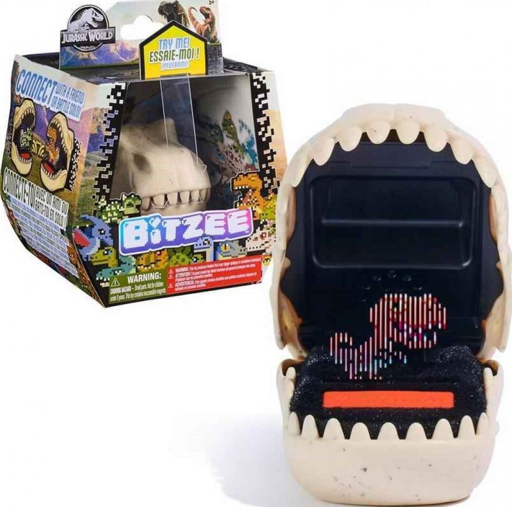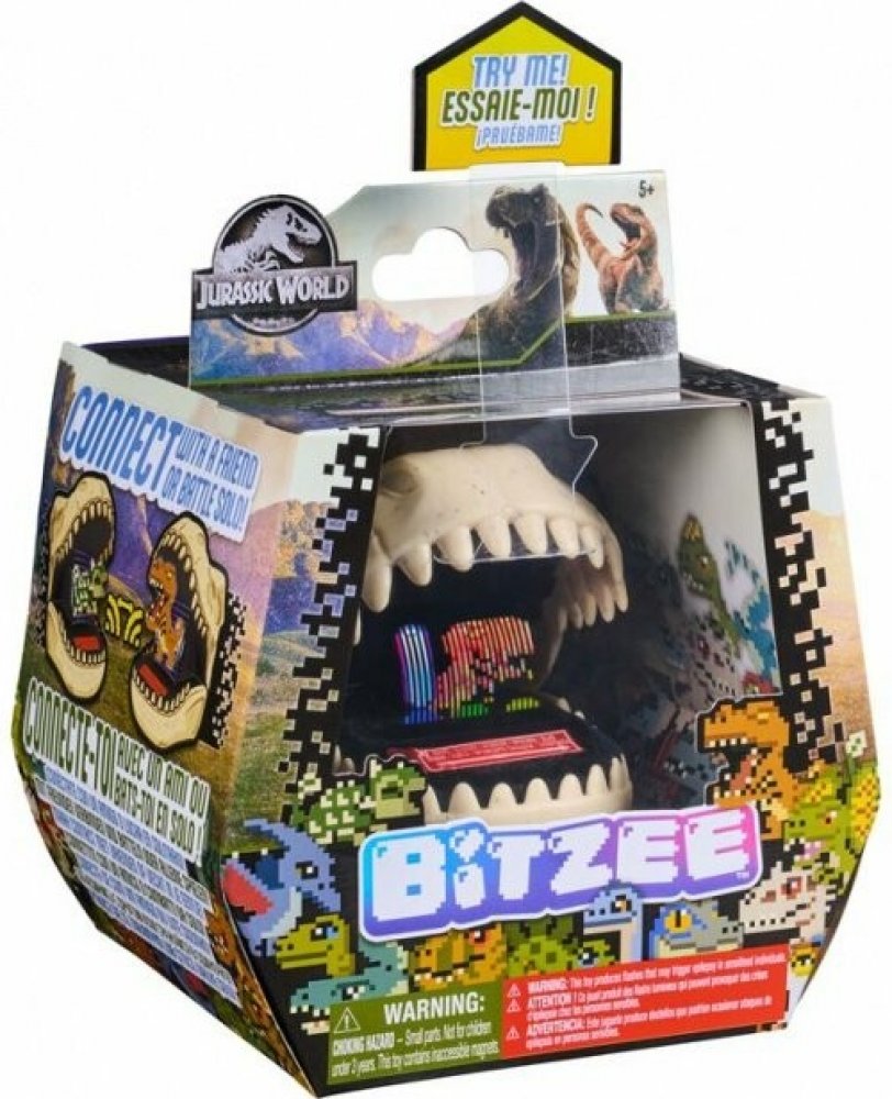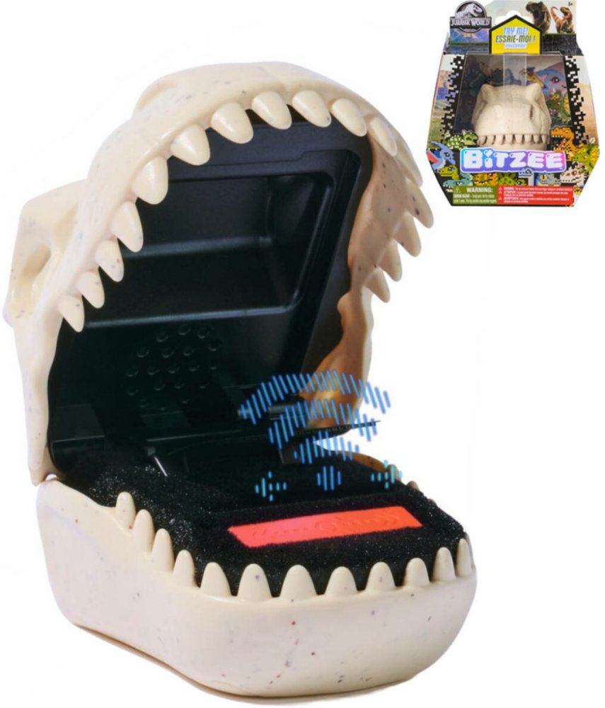 Zažijte obří zábavu s Bitzee: Jurský svět! Stejně jako digitální mazlíčci Bitzee, i tito dinosauři reagují na dotek, naklánění a otřesy zvuky a pohyby. Uvnitř pouzdra ve tvaru fosilie se vydáte na expedice, vykopáváte zkameněliny a líhnete dinosaury z vajec. Každý dinosaurus začíná jako mládě a potřebuje vaši péči, aby dospěl. Zlepšujte jejich sílu hraním miniher, aby mohli vyhrávat bitvy – sami nebo proti kamarádům. Získejte jantar a odemkněte jedinečné barvy pro své dinosaury! Poprvé můžete bezdrátově propojit dvě zařízení Bitzee: Jurský svět a bojovat nebo si mezi sebou dinosaury vyměňovat. Odemkněte všech 25 druhů dinosaurů.