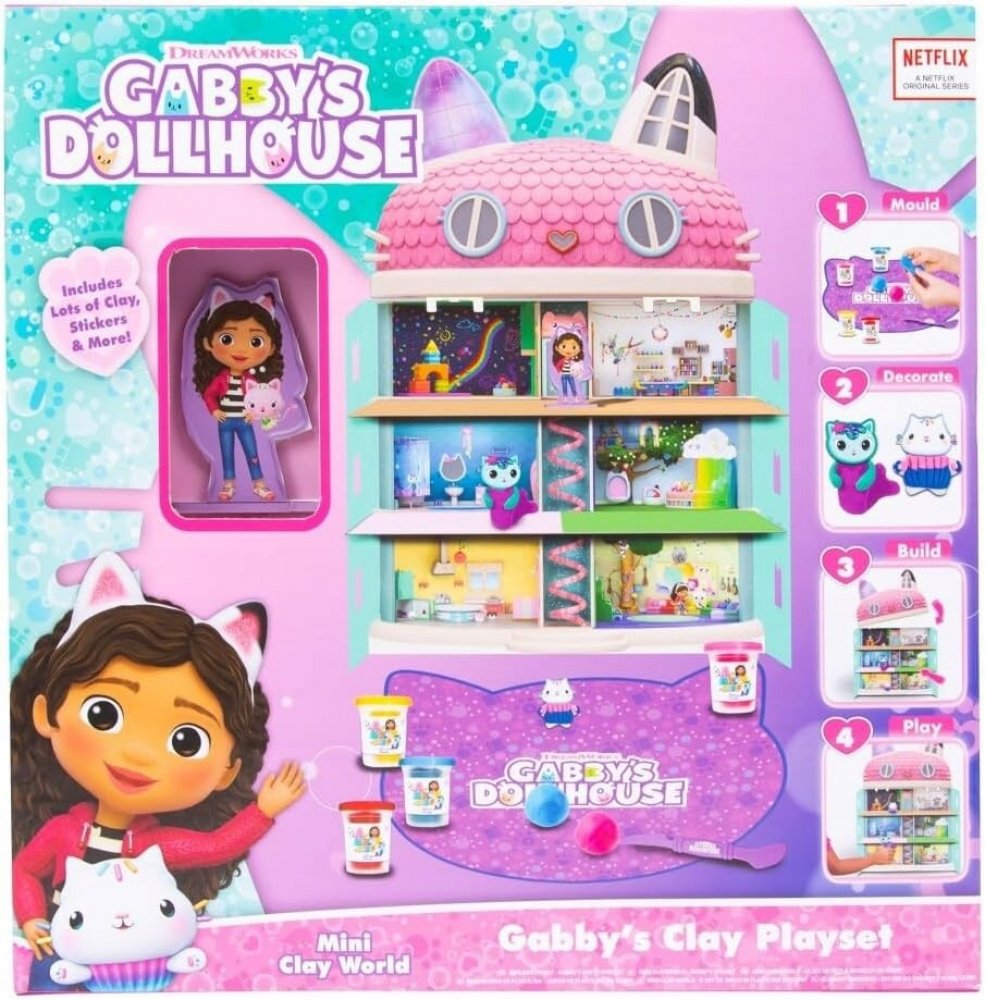 Otevřete krabička a objevte 6 nádob naplněných samotvrdnoucí hlínou, připravenou k přeměně na roztomilá kočičí mistrovská díla. Bez ohledu na to, zda chcete vytvořit hravého Pandusia nebo majestátního Lakotka, volba je na vás! Až skončíte s formováním svých chlupatých přátel, je čas zajistit jim domov. Kartonový domeček Gabi čeká na složení a jeho živé barvy a úchvatné vzory ho nechají opravdu vyniknout. Určitě ho ozdobte pomocí přiloženého archu samolepek a přidejte trochu osobního stylu!