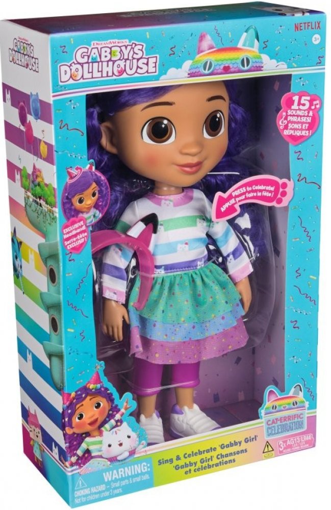 Exkluzivní panenka Gábi má na sobě jedinečné oblečení určené na oslavu a na hlavě má roztomilou kočičí čelenku s oboustrannými oušky, které můžete přeměnit z párty klobouku na její charakteristické kočičí uši. Gabby měří něco přes 30 cm, což z ní dělá perfektní společnici na hraní i spaní. Stiskněte jí hrudník a ozvou se zvukové efekty ze seriálu. Rozměr balení: 20,3x33x9,4 cm. Věk 3+