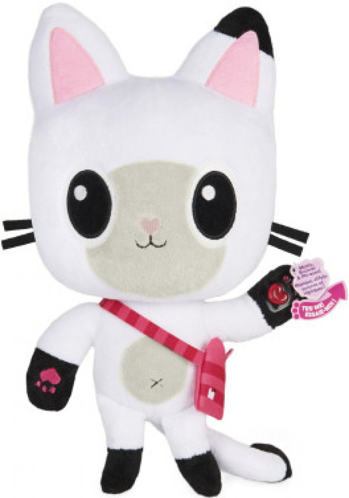 Připravte se na pořádné objetí s mluvícím Pandym z Gábinina kouzelného domku. Tento 33 cm vysoký super měkký a přítulný plyšák Gábinina nejlepšího kočičího kamaráda přichází ze seriálu přímo k vám. Se špičatýma ušima, rozkošným ocáskem, vyšívanými detaily a taštičkou je dokonalým kamarádem na hraní i na spaní. Zmáčkněte mu tlapku a podržte, aby se rozsvítila a začala hrát písničku. Krátce zmáčknět...