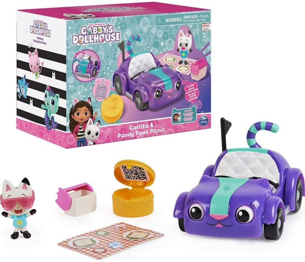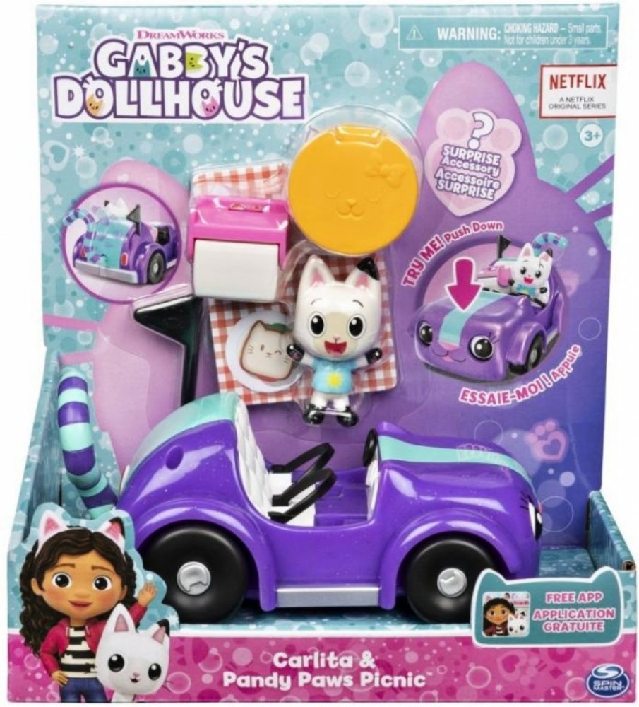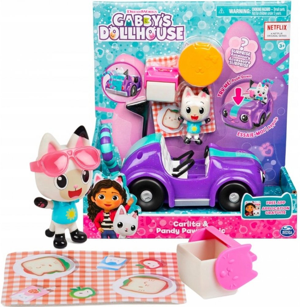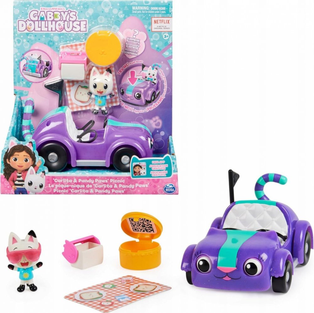 Autíčko Carlita je napůl kočka a napůl auto. Na sedadla se vejde Pandy i další postavička z Gábinina Kouzelného domku. Jezdi s Carlitou a ona bude vrtět ocáskam. Zatlač na kapotu a ona mrkne. Zatlač na levou a pravou stranu, aby se podívala doleva a doprava. Sada obsahuje autíčko, figurku Pandyho, piknikovou deku, chladící box a krabičku s překvapením. Vhodné od 3 let. Autíčko Carlita je napůl koč...