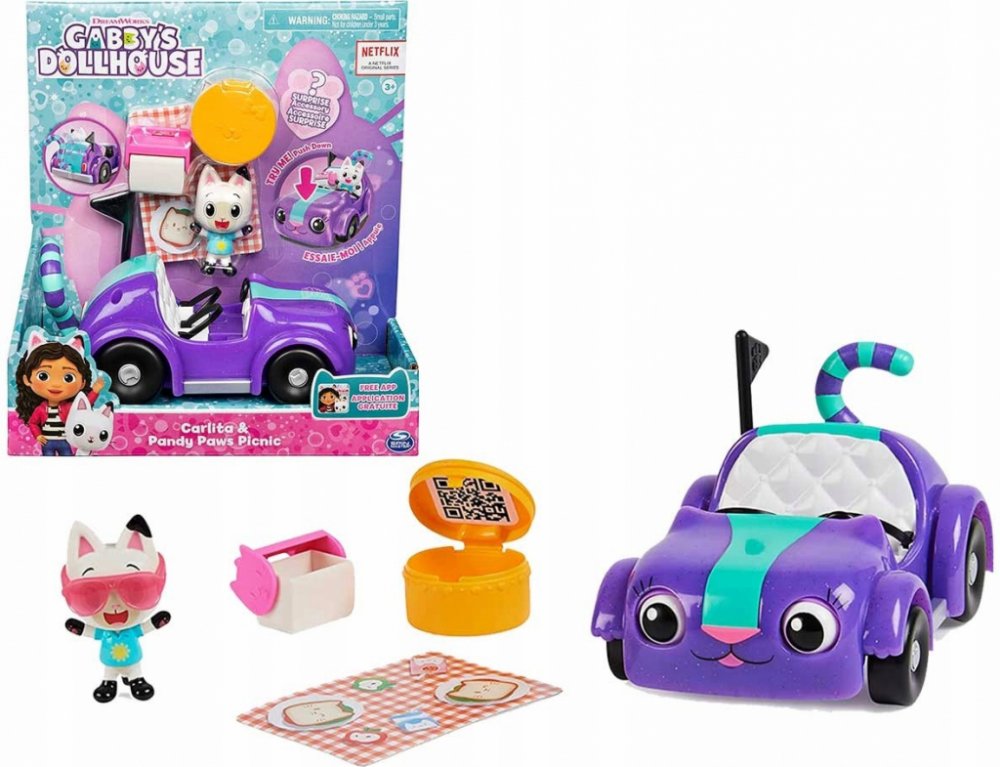 Autíčko Carlita je napůl kočka a napůl auto. Na sedadla se vejde Pandy i další postavička z Gábinina Kouzelného domku. Jezdi s Carlitou a ona bude vrtět ocáskam. Zatlač na kapotu a ona mrkne. Zatlač na levou a pravou stranu, aby se podívala doleva a doprava. Sada obsahuje autíčko, figurku Pandyho, piknikovou deku, chladící box a krabičku s překvapením. Vhodné od 3 let. Autíčko Carlita je napůl kočka a napůl auto. Na sedadla se vejde Pandy i další postavička z Gábinina Kouzelného domku. Jezdi s Carlitou a ona bude vrtět ocáskam. Zatlač na kapotu a ona mrkne. Zatlač na levou a pravou stranu, aby se podívala doleva a doprava. Sada obsahuje autíčko, figurku Pandyho, piknikovou deku, chladící box a krabičku s překvapením. Vhodné od 3 let.