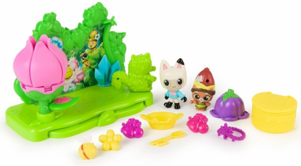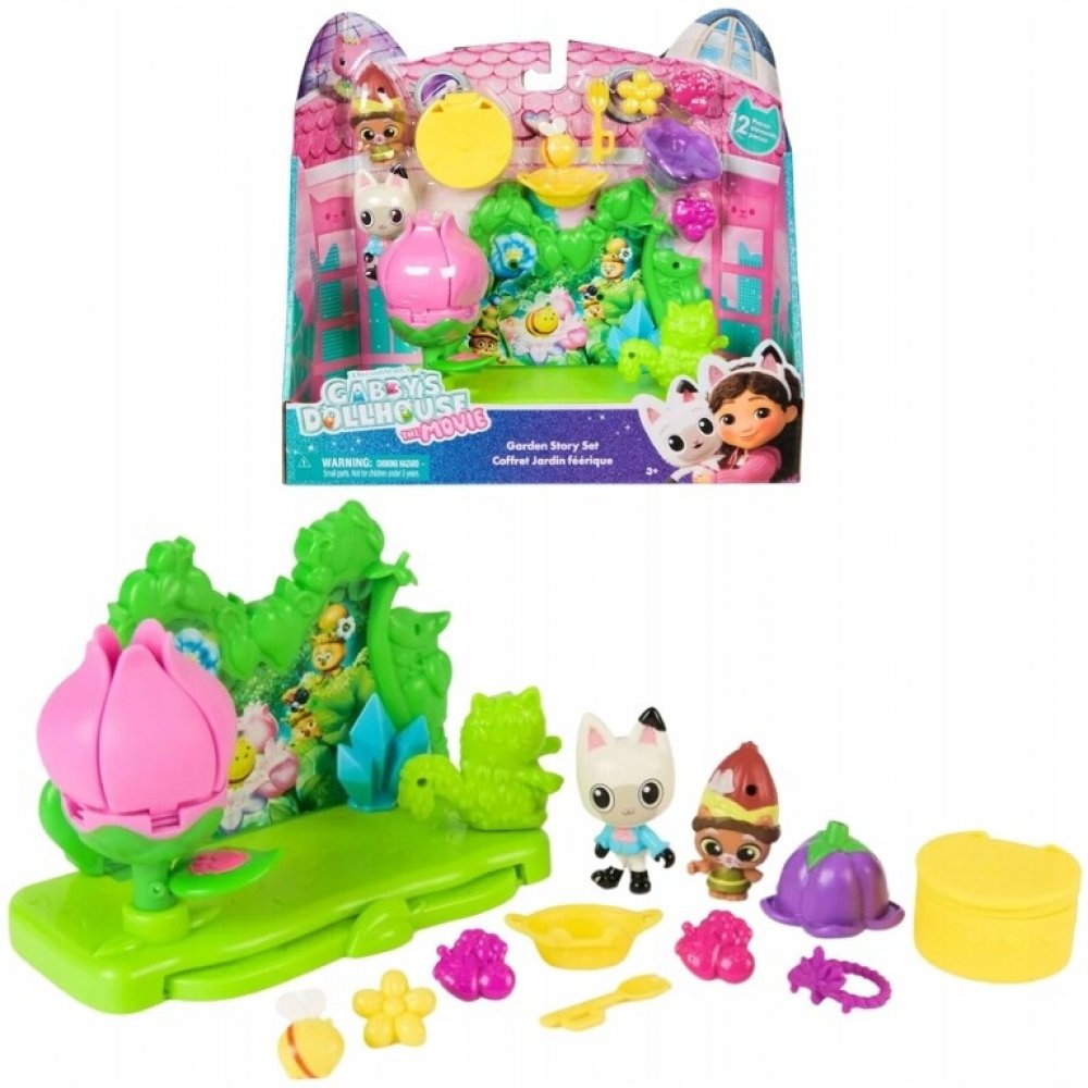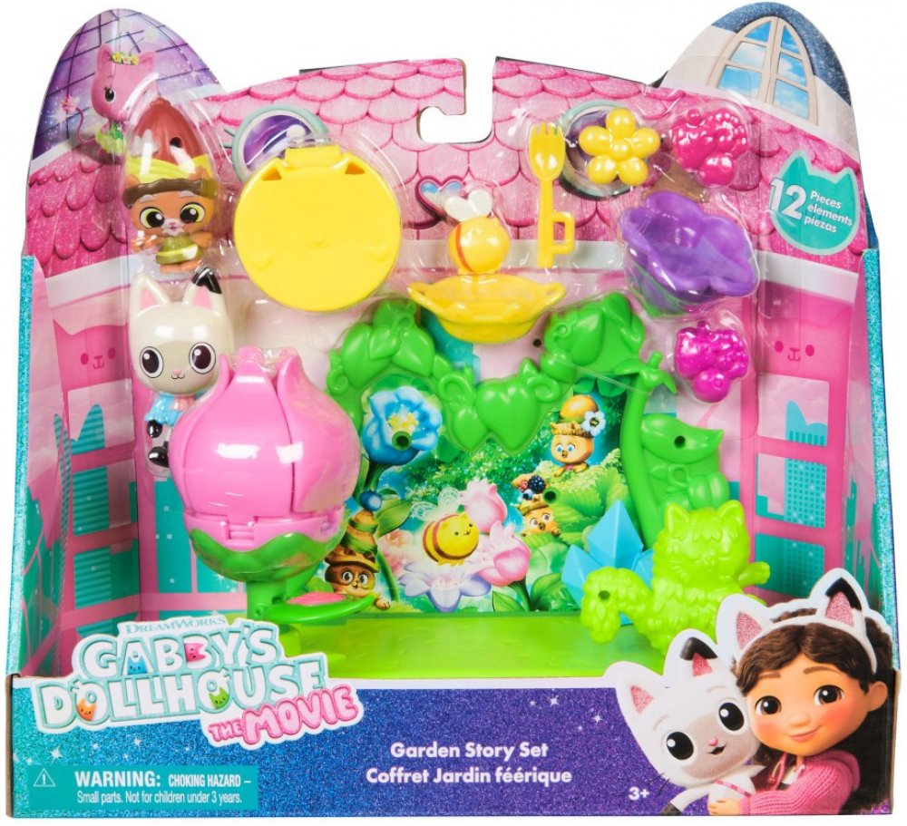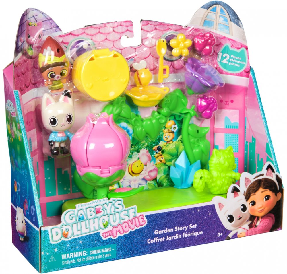 Přineste si domů kouzelný svět filmu Gábinin kouzelný domek s herní sadou Zahradní příběh, kde na vás čekají okouzlující dobrodružství! Tato kouzelná 12dílná herní sada obsahuje velký květ, který se otevře po stisknutí kouzelného tlačítka tlapkového pozdravu. Děti si zamilují výsuvnou plošinu sloužící jako piknikové místo, sundavací květinový klobouček pro Pandu Ťapku a doplňky jako včelokočku a lesní plody, které nabádají k úžasnému objevování s těmito skvělými vzdělávacími hračkami. Rozbalte doručený balíček z domečku stejně jako Gábina a objevte překvapení – poté naskenujte QR kód a odemkněte bonus v aplikaci Gábinin kouzelný domek. Tato sada je skvělým způsobem, jak podnítit představivost a vybídnout děti k mňau-úžasným objevům s těmito roztomilými kočičími hračkami ze světa Gábiny. Hračky z Gábinina kouzelného domku jsou jako stvořené pro děti, které si chtějí znovu prožít oblíbené chvíle z filmu o Gábině, nebo si vytvářet nová dobrodružství v jejím kouzelném domečku. Najdete tu hračky pro nejmenší – od doplňků do domečku a nábytku až po její mňau-skvělé kočičí kamarády a úžasné mořské víly. Každá hračka (prodávaná samostatně) nabízí hodiny a hodiny úžasné zábavy