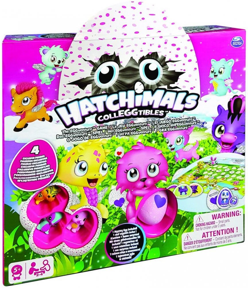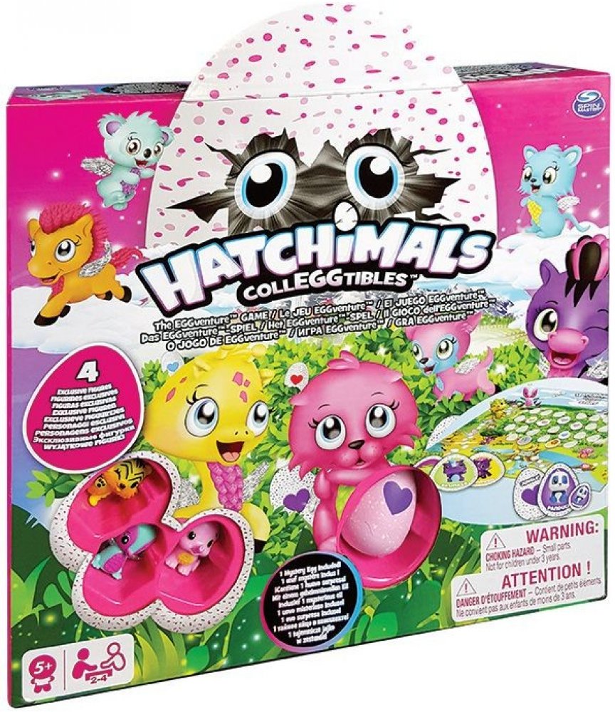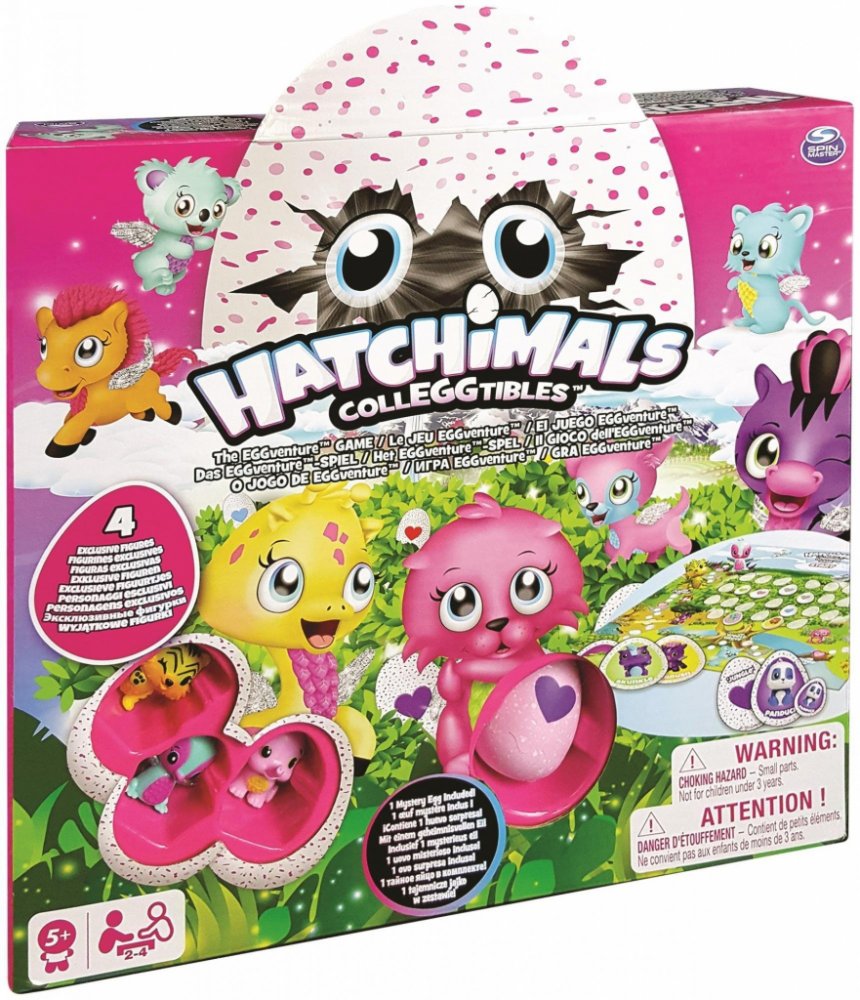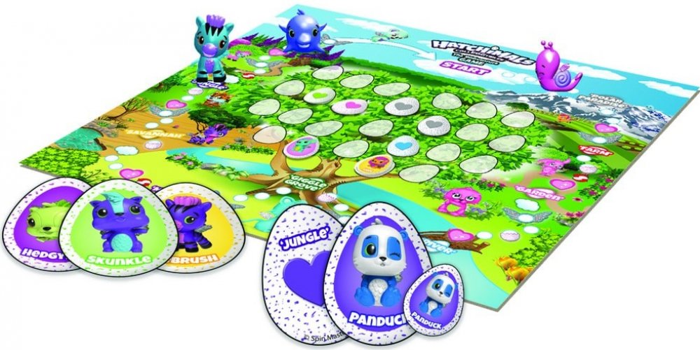 Tato hra potěší každého fanouška postaviček Hatchimals. Vaším úkolem je nasbírat všechny žetony, které odpovídají Hatchimals na kartičkách, které máte v ruce. Postavičky začínají na stejném místě, každý hráč má v ruce 5 karet, na herní desku rozdejte vaječné žetony lícem dolů. Hod kostkou vám určí o kolik políček se máte posunout. Na herní ploše je devět objektů, které určují druh vaječného žetonu k otočení. Když se shoduje s kartou ve vaší ruce, můžete si žeton nechat. Když se ve hře dostanete na křídla, můžete se přesunout, kam chcete, když na srdce, máte další tah. Ke hře máte navíc speciální tajemné zvířátko z kolekce Hatchimals.