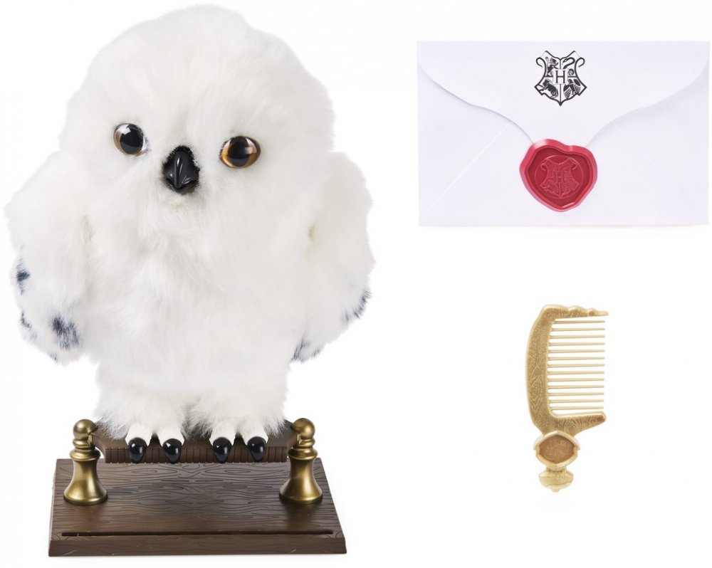 Interaktivní sova Hedvika z Harryho Pottera nadchne fanoušky známého světa čar a kouzel v Bradavicích. Hračka je vhodná pro děti od 5 let, ale udělá radost i sběratelům předmětů z filmu Harry Potter. Sovička dokáže otáčet hlavou až o 270°, mává křídly a na dotek má hebounké peří, které doslova vyzývá k pohlazení. Jakmile se jí dotknete, Hedvika zareaguje. Zbožňuje totiž mazlení.