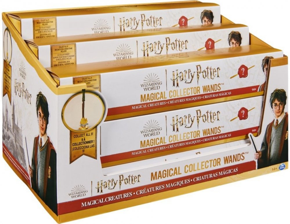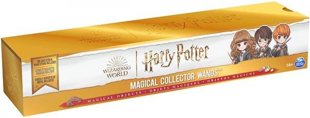 Odhal překvapení v podobě 30 cm hůlky se zlatou základnou a příslušenstvím, které je jedinečné pro konkrétní postavu. Vystav svou sběratelskou hůlku v prémiovém balení nebo ji postav na stojánek. Příslušenství pasuje přímo na základnu – objev Harryho Nimbus 2000, Hermionin kotlík, Lenčin přízrakohled a další.
