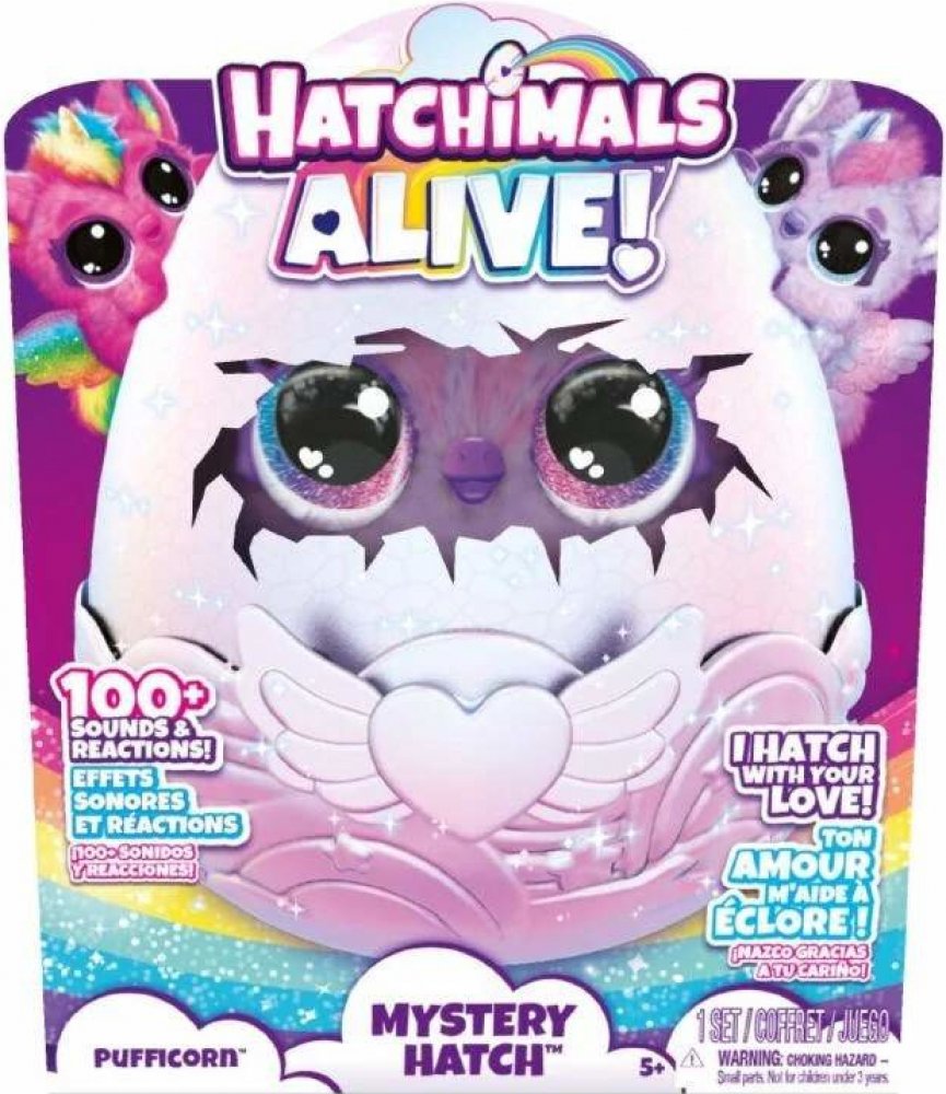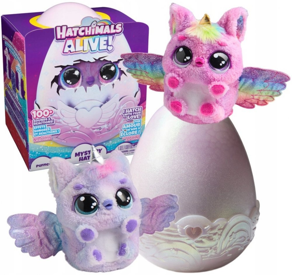Blíží se něco magického. Je to Hatchimals Líhnoucí se interaktivní zvířátko, které potřebuje vaši lásku, aby se mohlo vylíhnout. Líhnutí Hatchimals je skutečně vzrušujícím zážitkem, doplněným o mlhu, světelné efekty a více než 100 zvuků a reakcí. Prostě je musíte mít! Kdo se vám vylíhne? Bude to překvapení! Uvnitř každého vajíčka Hatchimals Líhnoucí se interaktivní zvířátko se nachází 1 ze 2 postaviček. Podpořte svoji postavičku v líhnutí se na svět tím, že se s vajíčkem budete mazlit, ťukat na něj a zvedat a kolébat ho – vajíčko svítí a houpe se, a dokonce uslyšíte, jak vám váš Hatchimal zevnitř odpovídá. Až vajíčku dáte dostatek lásky, přijde čas na to svolat rodinu a přátele a připravit se na dokonalý zážitek z líhnutí. Objeví se magická mlha a vajíčko se rozzáří duhovými barvami – napětí roste. Po vylíhnutí vás bude váš nový kamarád inspirovat k hrám plným fantazie. Samou láskou si přiveďte k životu svou vlastní postavičku Hatchimal z řady Hatchimals Líhnoucí se interaktivní zvířátka.
