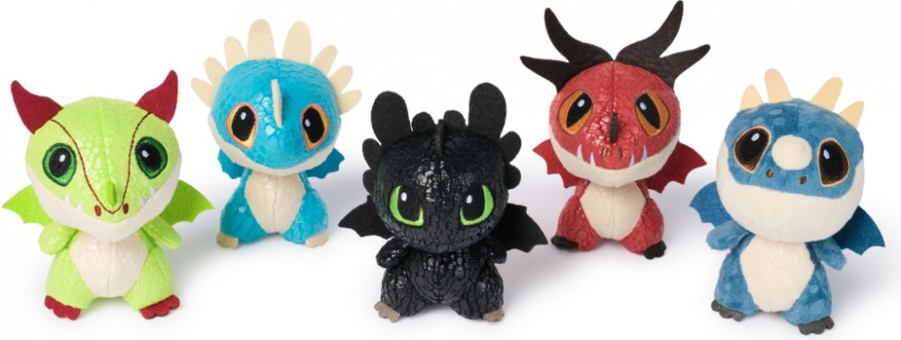 Plyšový drak z filmu Jak vycvičit draka, je ukrytý v sudu, takže každé rozbalení je překvapení. Plyšák je akorát do malé ruky, má lesklý povrch a vyšívané detaily jako ve filmu. Děti mohou sbírat pět různých draků a vymýšlet nové příběhy pokaždé, když sud otevřou. Plyš je vyroben z kvalitního polyesteru, takže vydrží a snadno se čistí. Pevné provedení a plné detaily jsou bezpečně pro děti od 4 let...