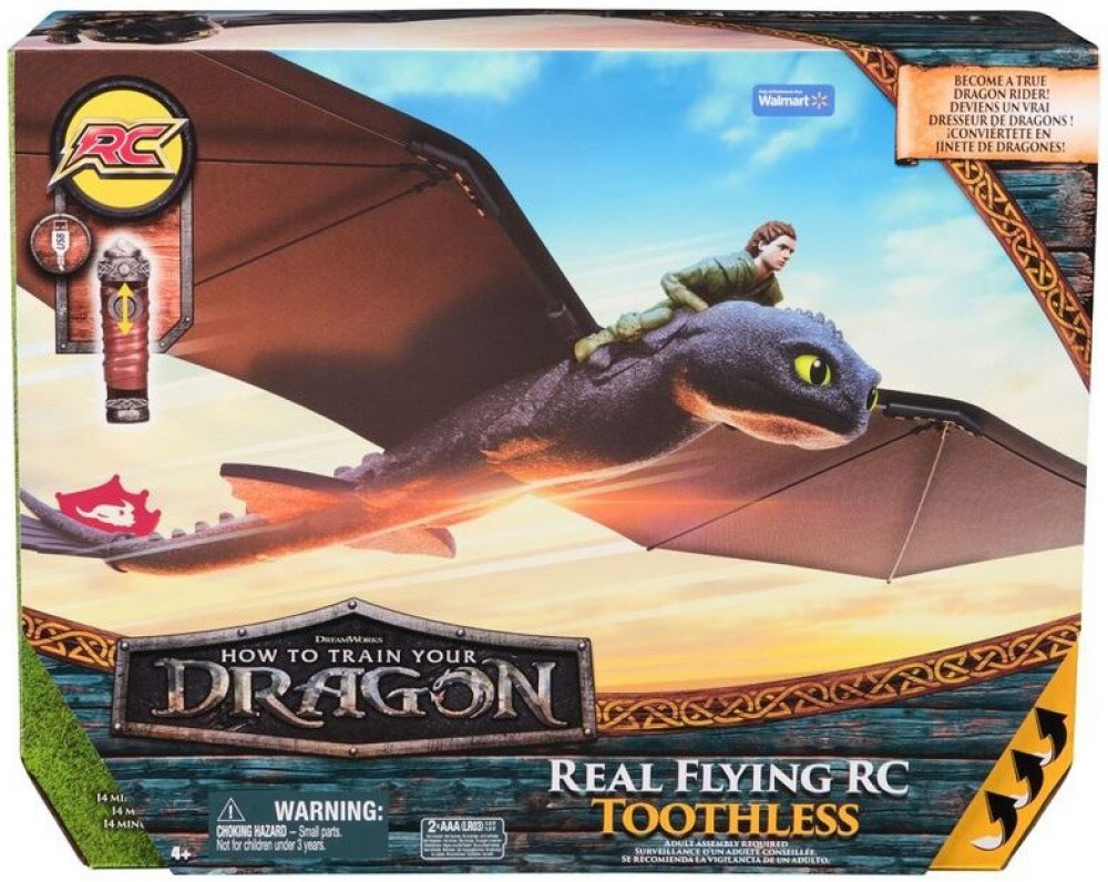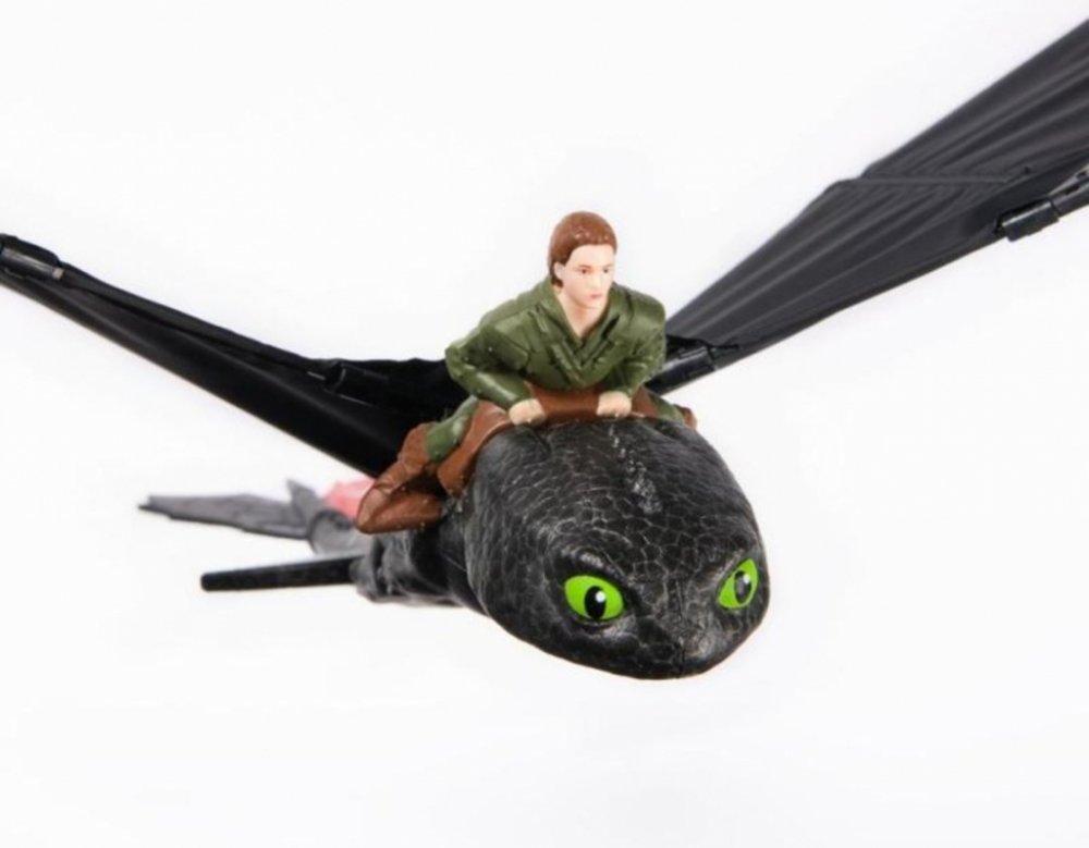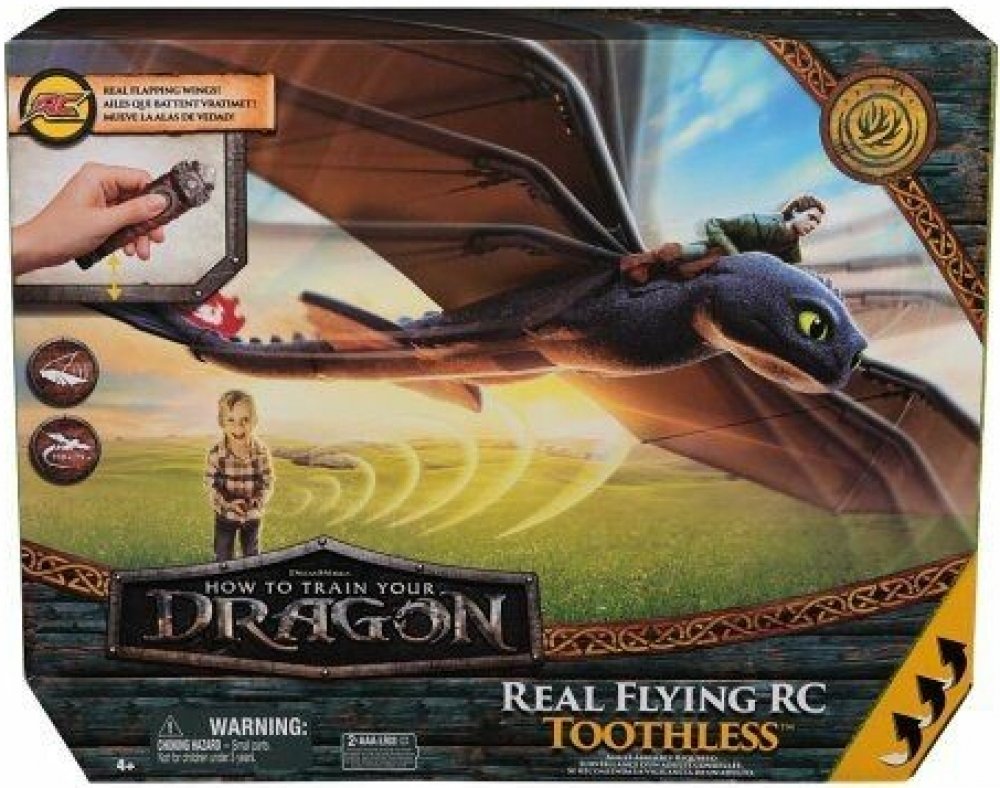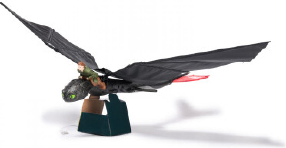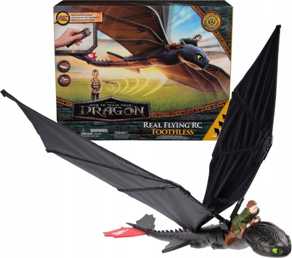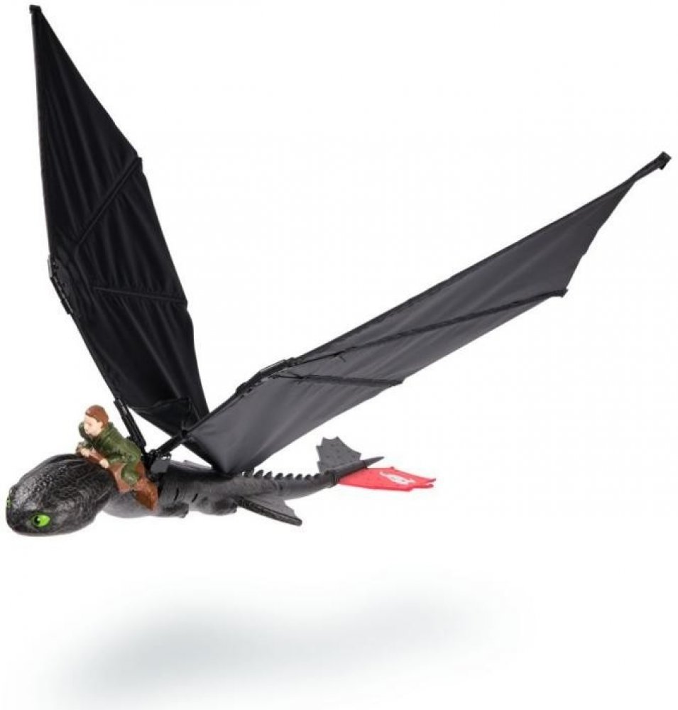 Letící drak Bezzubka na dálkové ovládání s figurkou Škyťáka. Vhoďte draka do vzduchu a ovladačem aktivujte letovou fázi. Drak začne mávat křídly a velmi realisticky letí. Ovladačem se kontroluje pouze výška. Směr letu se určí natočením jeho ocasu a podle toho popisuje velký nebo menší oblouk letu.