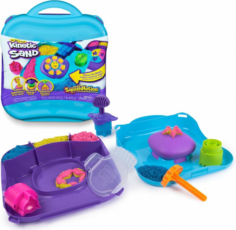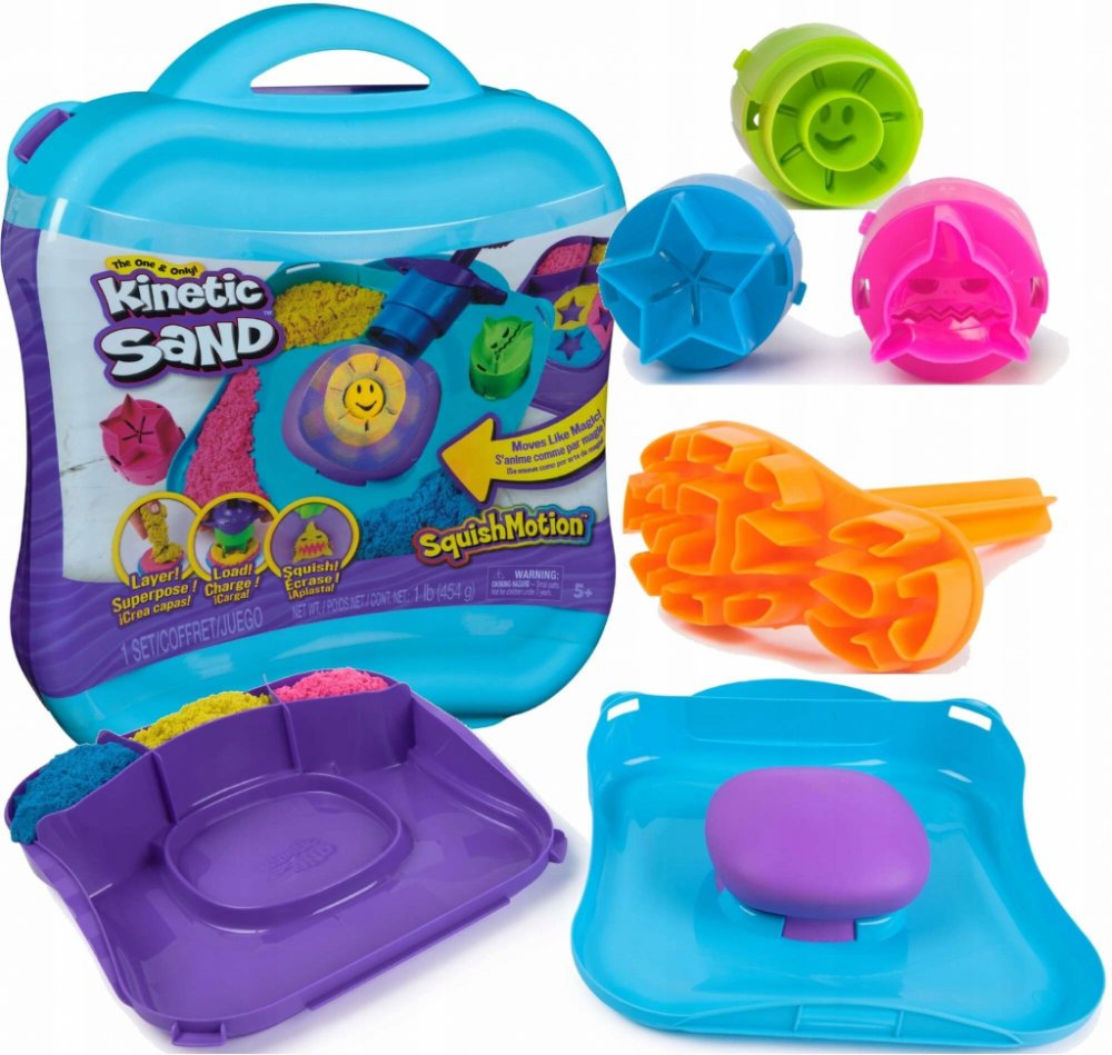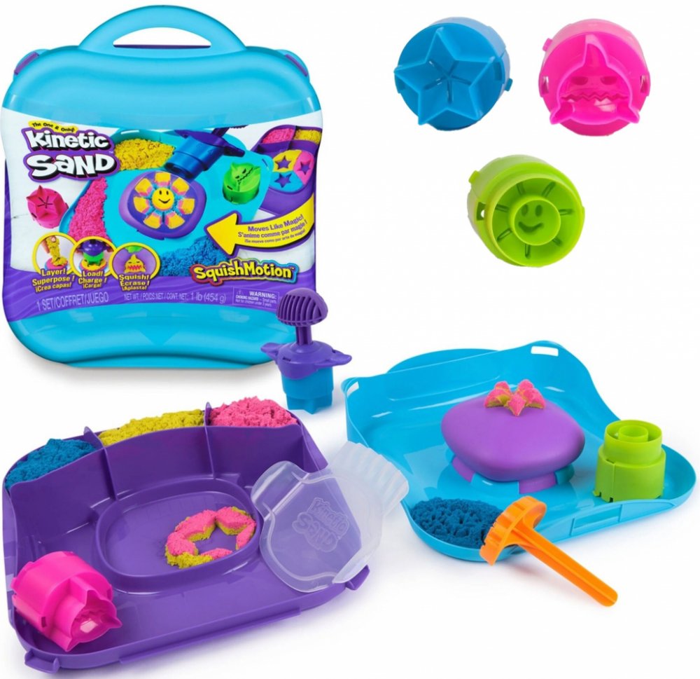 SADA POHYBLIVÝCH FOREM KINETICKÝ PÍSEK Sada Korálový útes z projektu Kinetic Sand Planet umožňuje oživit kreativitu a pohyb. Tato sada kinetického písku podnítí fantazii a vykouzlí úsměv na dětských tvářích, protože mohou písek drtit a odhalovat fascinující pískové výtvory na pohyblivé hrací ploše. Sada Pohyblivé formičky je triviální: vrstvit, naložit a drtit. Vložte růžový, žlutý a modrý kinetický písek (453 g) do krabice, srovnejte ho mačkací lopatkou a na razítkovací nástroj umístěte žraloka, slunce nebo hvězdu. Stiskněte písek umístěný na pěnové podložce a sledujte pohyb svých výtvorů - žralok se šklebí, slunce rozkvétá a hvězda vybuchuje. Nasypejte, promíchejte a vrstvěte přímo na drtitelný povrch, poté nakrájejte pomocí lisovací lopatky a použijte razítko s podrážkou pro ještě více nekonečné zábavy. Možnosti jsou nekonečné. Jedinečný kinetický písek je vyroben z přírodního písku, který drží pohromadě a usnadňuje úklid. Tvořte znovu a znovu - je to tak uspokojující, že se nebudete moci odtrhnout. Kinetický písek je vítaným doplňkem senzorické nádoby nebo senzorického stolku, dětských výtvarných aktivit a Montessori hraček. Kinetický písek podporuje jemnou motoriku a kreativitu prostřednictvím samostatné hmatové hry. Se sadou Pohyblivé tvary z kinetického písku zažijete kouzlo v každém ohledu.