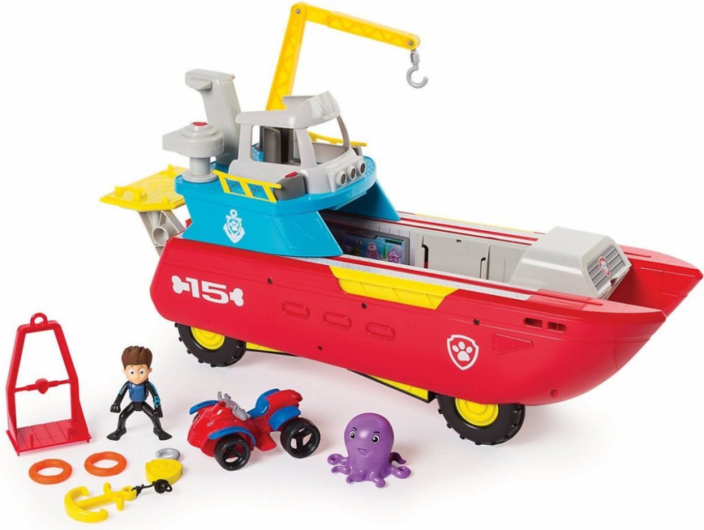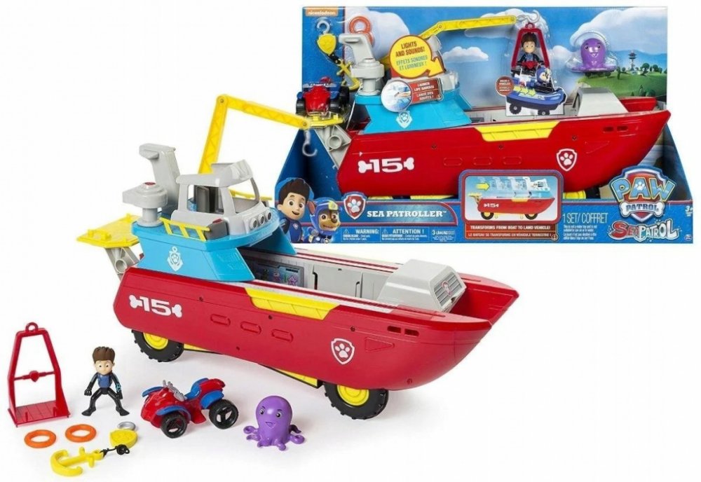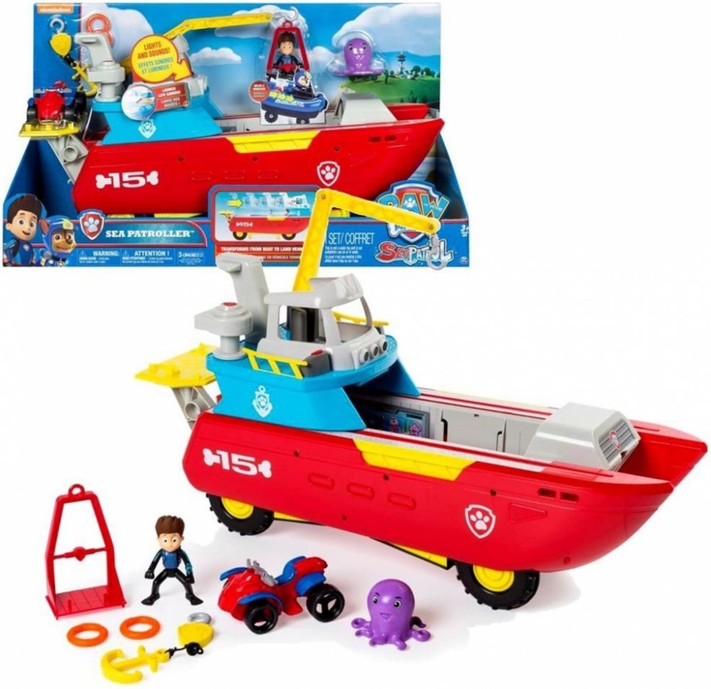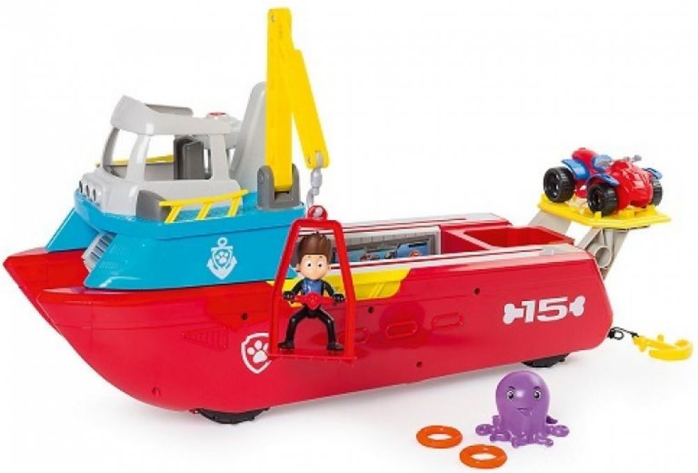 Dokonalé záchranné vozidlo 2 v 1 pro "vodu" a pozemní dobrodružství! V žádném okamžiku se loď s mostovým a jeřábovým ramenem přemění na pozemní vozidlo s koly pro hrubý terén. Kolečka se protáhnou, když je most posunut dopředu. Jeřábové rameno s klecí vezme Rydera tam, kde je jeho pomoc potřebná. S katapultem jsou vypalovány záchranné kruhy. Se světelnými a zvukovými efekty a odnímatelnou kotvou. ...