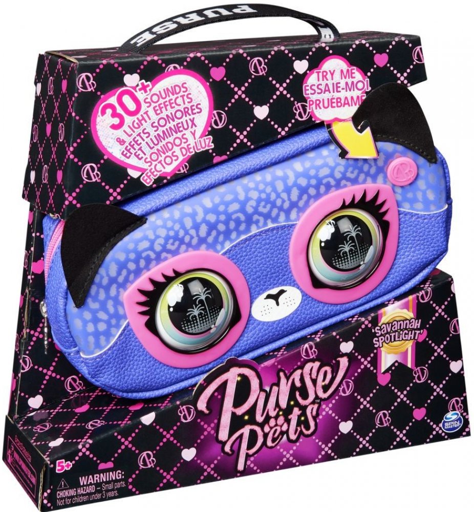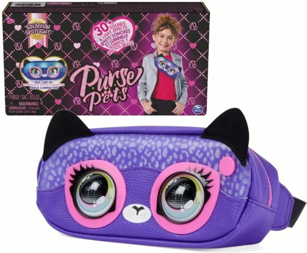 Obsahuje 3 AAA baterie. Interaktivní hračky Purse Pets pro děti se skvěle hodí jako dárek k narozeninám, pod stromeček nebo do vánoční punčochy, nebo jako dárek k jakékoli příležitosti pro holčičky od 5 let. Udělejte ohromující dojem, ať jste kdekoli s kabelkou Purse Pets Savannah Spotlight Belt Bag.