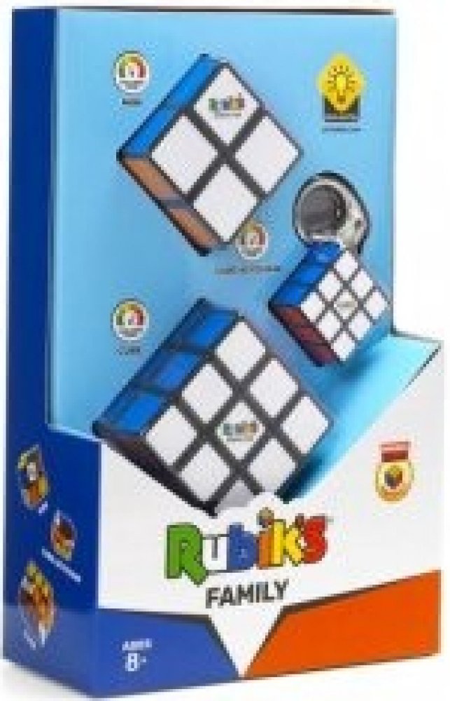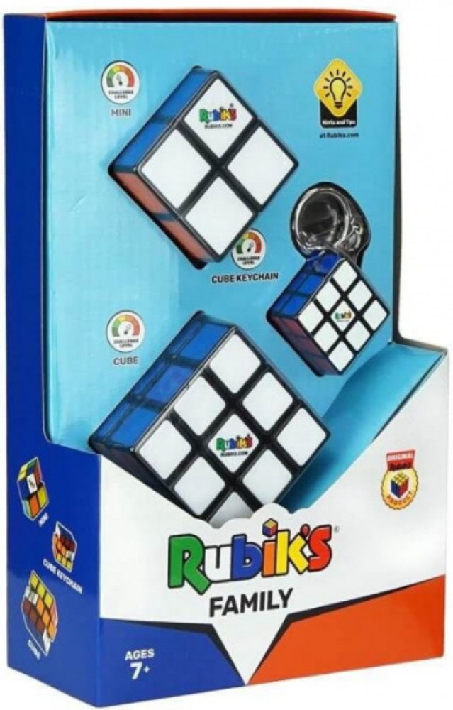 Nejpopulárnější verze Rubikovy kostky 3x3 v sadě s kostkou 2x2 a funkčním přívěskem 3x3 pro fandy a milovníky těchto klasických hlavolamů. Vhodné od 8 let. Sada Rubikova kostka Family PackSada Trio Pack je nezbytným doplňkem pro všechny fanoušky Rubikovy kostky. Skládá se z kostky 2x2x2, kostky 3x3x3 a kostky 4x4x4. Kostka 2x2x2 je ideální pro nejmladší a začínající hráče, kterým se standardní kostka 3x3x3 může zdát příliš obtížná. Klasická kostka 3x3x3 je nyní k dispozici v novém provedení a má rychlejší a plynulejší mechanismus. Kostka 4x4x4 je novou výzvou pro ty, kterým nedělá problém vyřešit kostku 3x3x3, ale zdá se jim těžší! Nejoblíbenější verze Rubikovy kostky 3x3 v sadě s kostkami 4x4 a 2x2 pro fanoušky a milovníky těchto klasických hlavolamů. Rozměry balení: cca 22,5 x 14 x 6,4 cm Doporučený věk: 8+