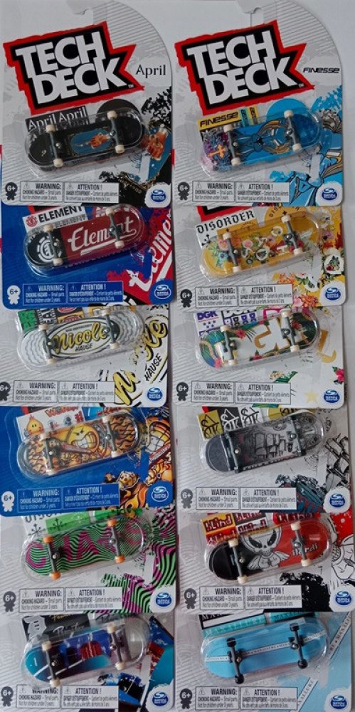 Vyber si z široké škály zcela nových originálních tvarů a stylů fingerboardů. Tyhle malé skateboardy ovládáš pomocí prstů. Nauč se co nejvíce triků. V balení najdeš kromě stylového sestaveného prkna také náhradní kolečka, samolepky a mininářadí. Vhodné od 6 let.