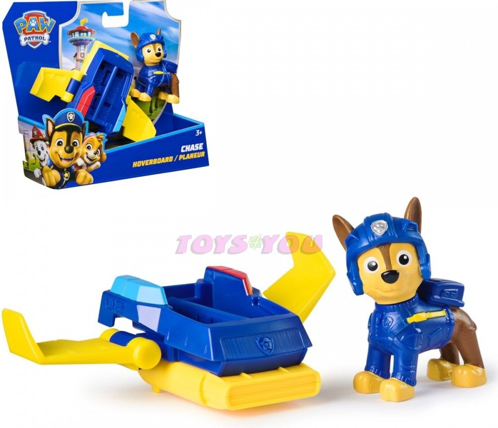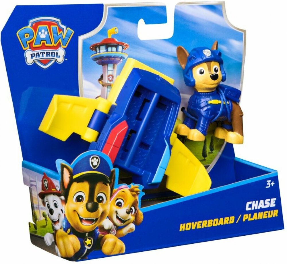 Chase, jeden z členů Tlapkové patroly Air Rescue, představuje dětem svůj nový stroj. Stejně jako jeho šikovní kolegové z týmu, je připraven na povel k startu záchranné akce. Stačí, když mu děti upevní nohy do správné pozice v kokpitu, roztáhnou křídla vznášedla a vznesou se s ním do vzduchu potřebným směrem.
