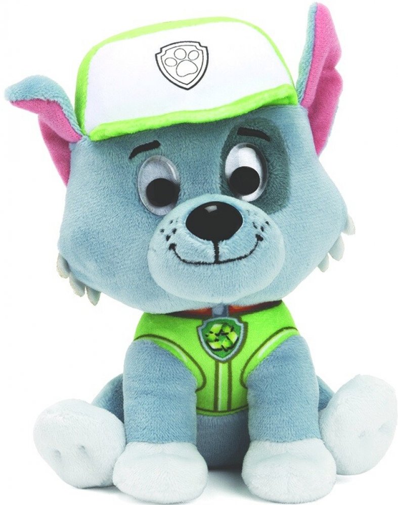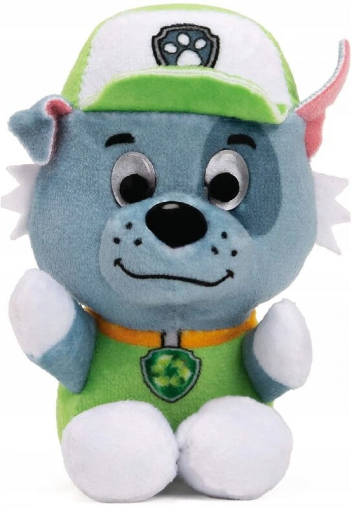 Plyšový pejsek, plyšák Rocky v licenci Tlapková patrola (Paw Patrol), hebká plyš, vyšívané detaily, realistický vzhled, velikost 15cm.
