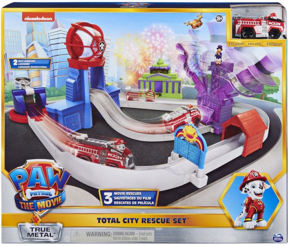 Tlapková patrola záchrana města zaručuje dětem hodiny zábavy. Psí záchranář Marshall přijíždí za dětmi ve svém hasičském vozidle přímo po dráze. Děti mohou napomoci ochraně města před katastrofou a mohou vyslat hrdinu odpálením ze startovací rampy na trať. Urychlí tak jeho přesun k hořící radnici, ke které se dostanou průjezdem cihlovou zdí a výtahem.Mohou tak uhasit požár a odhalit starostu Humdi...