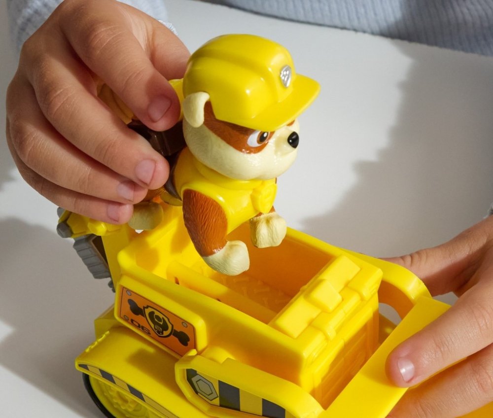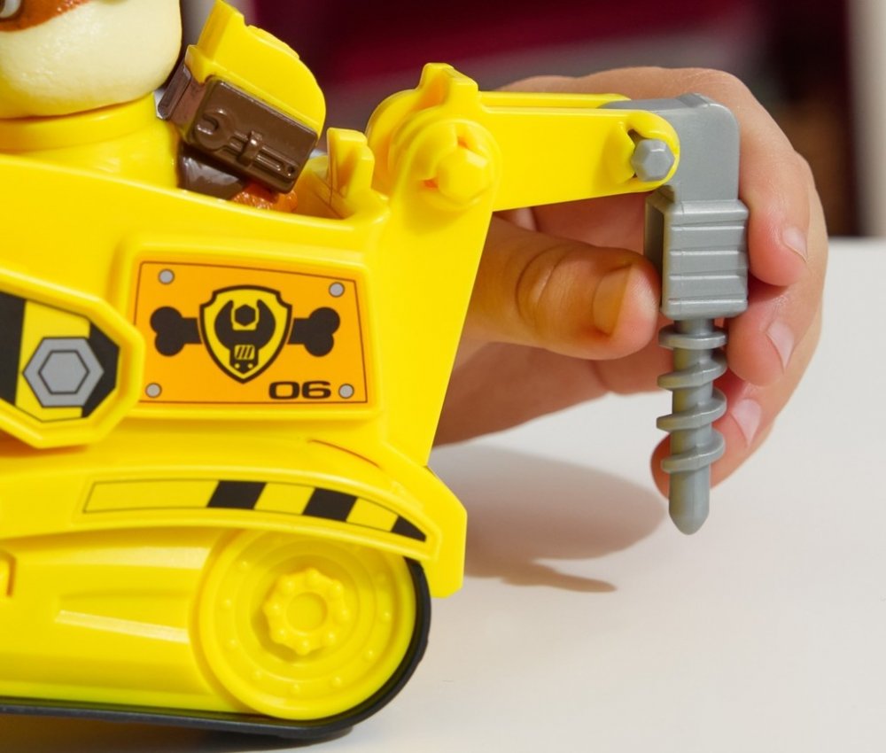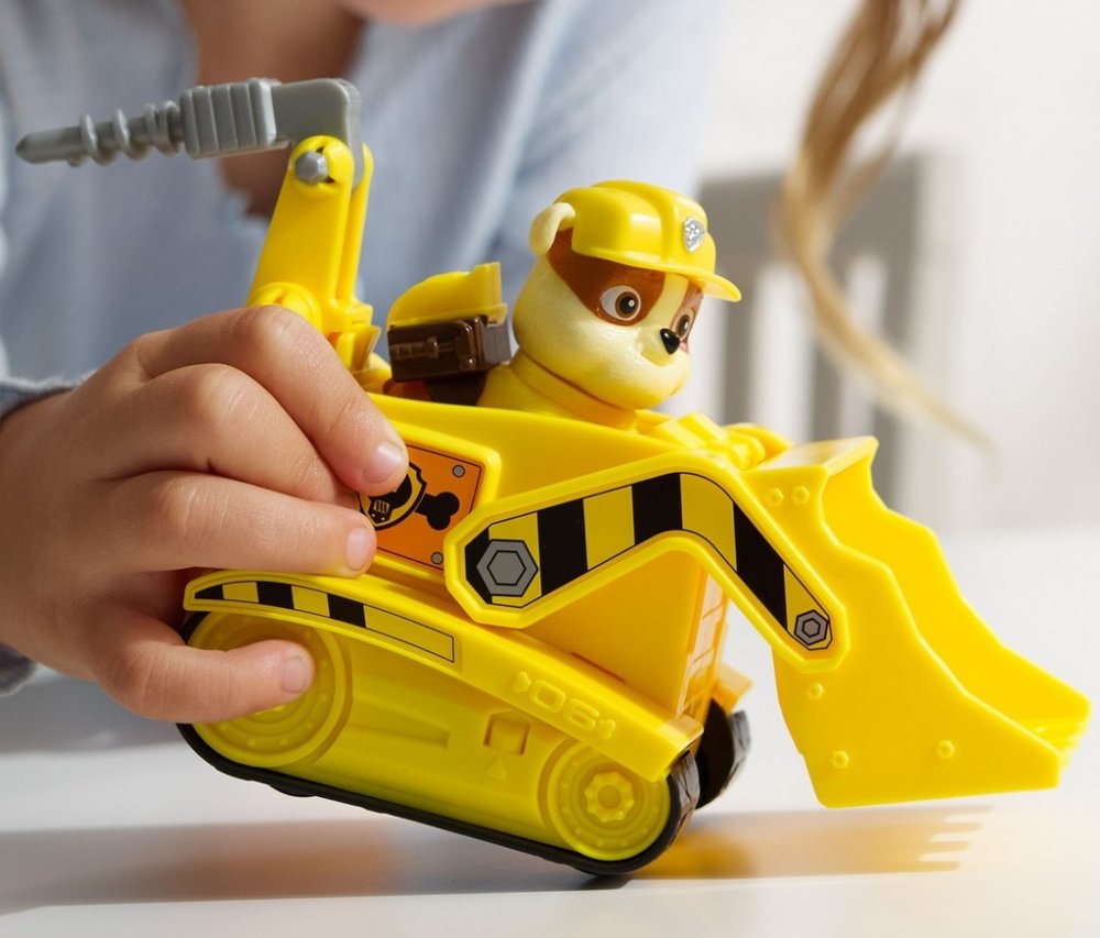 Tento výrobek model stavebního vozidla Rubble, jedné z postav oblíbeného seriálu a filmu, je vyroben z kvalitního plastu, který mu dodává pevnost a odolnost. Vozidlo z přední strany připomíná buldozer. Na druhé straně má v zadní části funkce bagru. Je zde pohyblivá lžíce spolu se zvedacím ramenem.