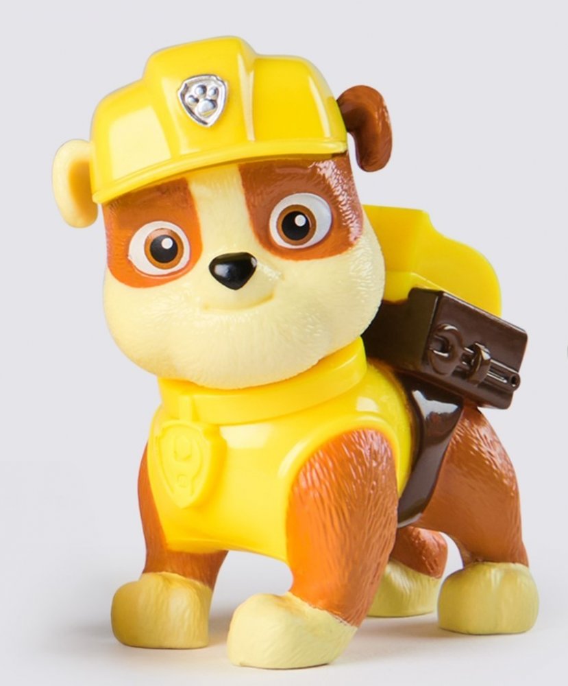 Rubble, pejsek z Tlapkové patroly, je baculatý anglický buldoček se žlutohnědou srstí a hřejivýma hnědýma očima. Vždy nosí žlutou helmu a stavební obleček, připravený pracovat na svém buldozeru a pomáhat v každé situaci vyžadující těžkou techniku. Žluté vozidlo je detailně propracované s výraznými rysy.