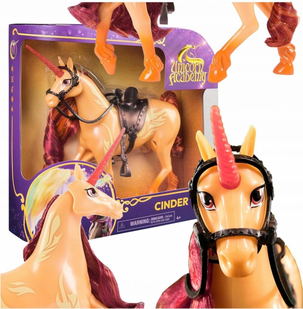 Doplňte svou sbírku panenek z Unicorn Academy o Valentinina jednorožce Cindera! Tento ohnivý 28cm koník Cinder, inspirovaný animovaným pořadem od NETFLIXu a knižními bestsellery, působí jako živý. Krásně propracovaný Cinder má perleťové tělo, žluté znaky ohnivé magie na boku, majestátní třpytivý roh, barevnou hřívu a ocas a odnímatelnou uzdou a sedlem pro ještě více zábavy. Jemně posuňte Cinderovu hlavu, abyste probudili jeho osobnost a spolu s Valentinou znovu prožili magický zážitek sblížení jednorožce a jezdce. Vykartáčujte Cinderovu jeho měkkou hřívu a ocas pomocí Valentinina stylingového hřebenu (není součástí balení, prodává se samostatně s panenkou) a vydejte se za dobrodružstvím, abyste ochránili Jednorožčí ostrov a jeho kouzlo! Chcete-li objevit všechny způsoby, jak si užít svět Unicorn Academy se svými oblíbenými postavami, hledejte všechny panenky a jejich jednorožce (prodávají se zvlášť) a rozšiřte svůj kouzelný svět! Kouzelné pouto mezi studenty Unicorn Academy a jejich jednorožci rozproudí nekonečné příběhy plné dětské představivosti. Hračky s tematikou Unicorn Academy jsou perfektním dárkem pro dívky k narozeninám nebo jakékoli jiné příležitosti – jsou určené pro děti, které mají rády jednorožce a koně, panenky a doplňky, domečky pro panenky, sběratelské předměty, plyšové hračky a další. Přeneste kouzlo Unicorn Academy k sobě domů díky Cinderovi! Doplňte svou sbírku panenek z Unicorn Academy o Valentinina jednorožce Cindera! Tento ohnivý 28cm koník Cinder, inspirovaný animovaným pořadem od NETFLIXu a knižními bestsellery, působí jako živý. Krásně propracovaný Cinder má perleťové tělo, žluté znaky ohnivé magie na boku, majestátní třpytivý roh, barevnou hřívu a ocas a odnímatelnou uzdou a sedlem pro ještě více zábavy. Jemně posuňte Cinderovu hlavu, abyste probudili jeho osobnost a spolu s Valentinou znovu prožili magický zážitek sblížení jednorožce a jezdce. Vykartáčujte Cinderovu jeho měkkou hřívu a ocas pomocí Valentinina stylingového hřebenu (není součástí balení, prodává se samostatně s panenkou) a vydejte se za dobrodružstvím, abyste ochránili Jednorožčí ostrov a jeho kouzlo! Chcete-li objevit všechny způsoby, jak si užít svět Unicorn Academy se svými oblíbenými postavami, hledejte všechny panenky a jejich jednorožce (prodávají se zvlášť) a rozšiřte svůj kouzelný svět! Kouzelné pouto mezi studenty Unicorn Academy a jejich jednorožci rozproudí nekonečné příběhy plné dětské představivosti. Hračky s tematikou Unicorn Academy jsou perfektním dárkem pro dívky k narozeninám nebo jakékoli jiné příležitosti – jsou určené pro děti, které mají rády jednorožce a koně, panenky a doplňky, domečky pro panenky, sběratelské předměty, plyšové hračky a další. Přeneste kouzlo Unicorn Academy k sobě domů díky Cinderovi!