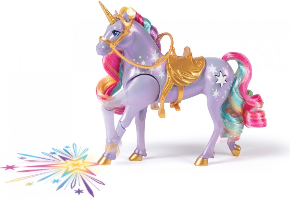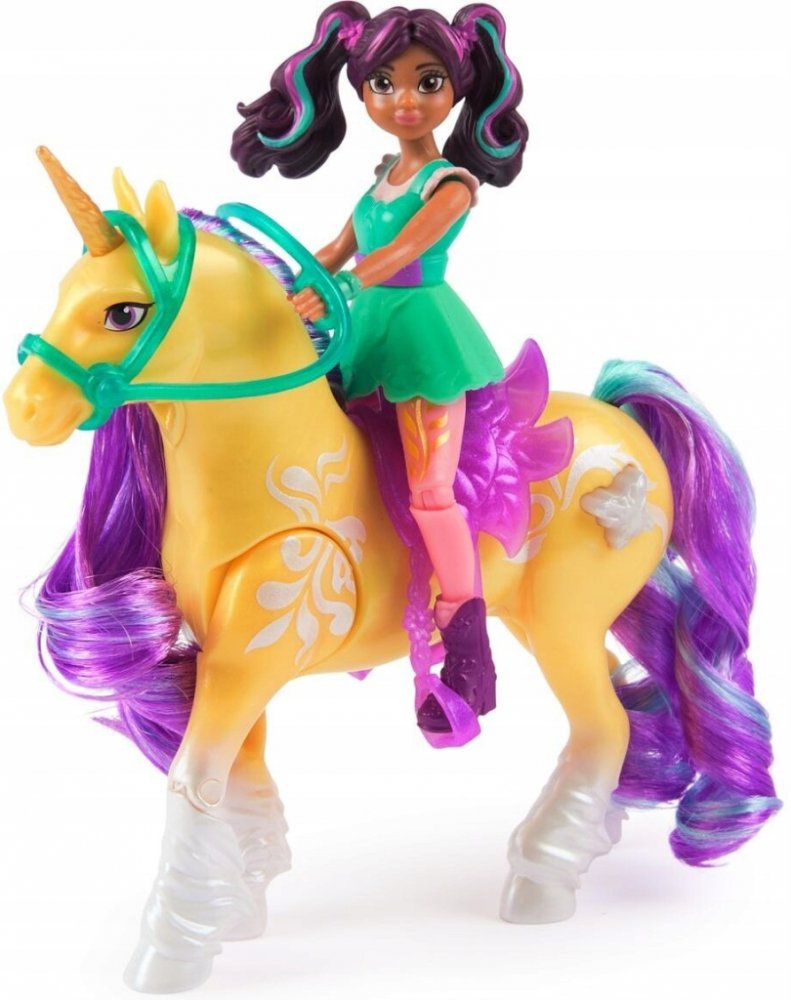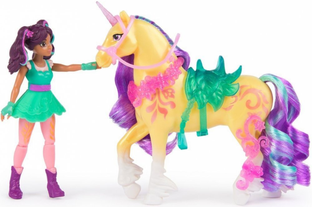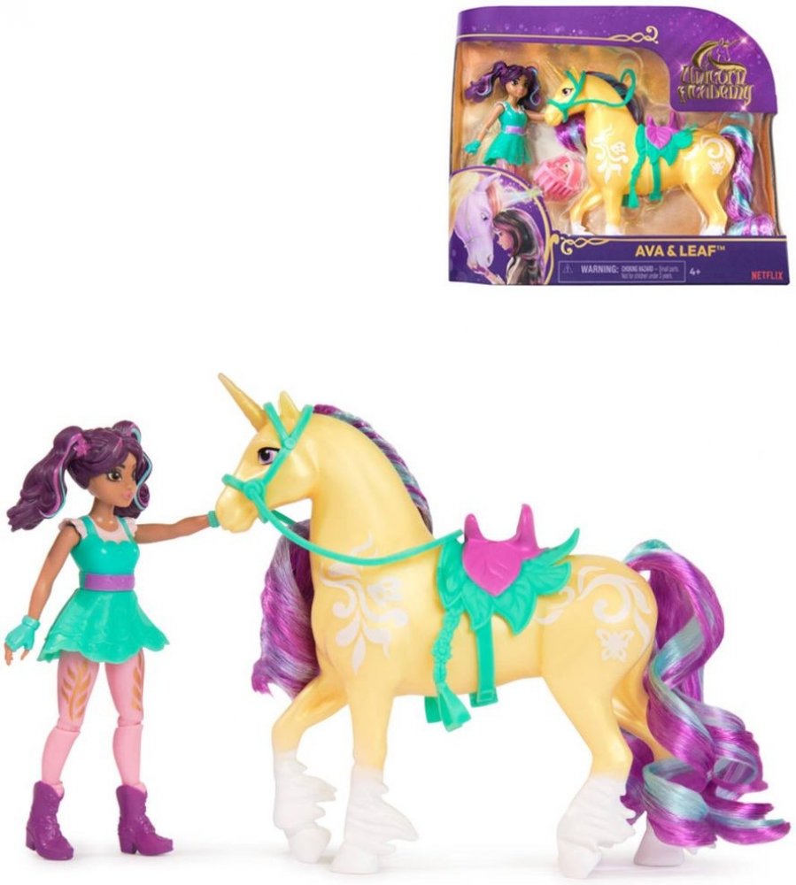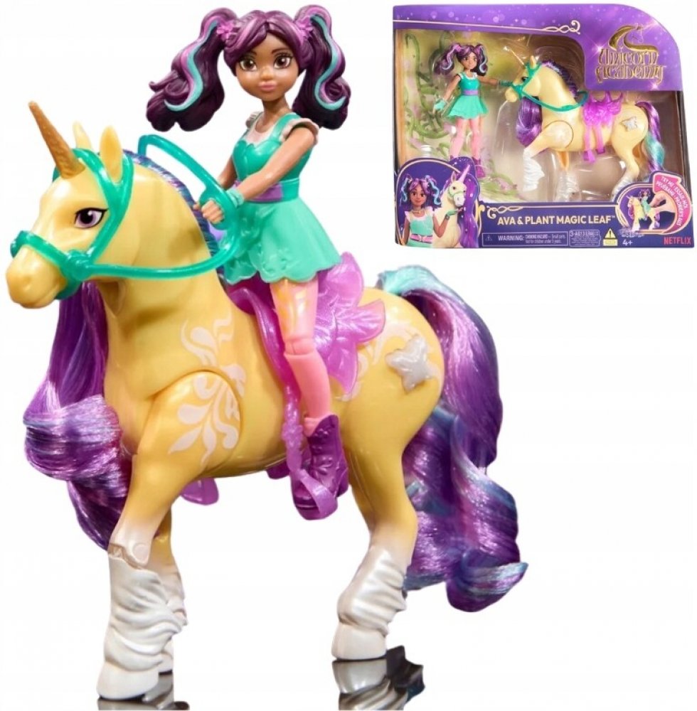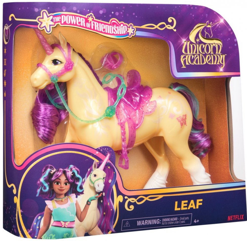 Doplňte svou sbírku panenek z Jednorožčí akademie o Avina jednorožce LEAF! Díky této bezmála 28cm hračce na motivy animovaného seriálu od NETFLIXu podle bestsellerové knižní série, kde přátelství drží otěže osudu, laskavý a milující Lístek opravdu ožije. Lístek disponuje krásnými detaily, perleťovými znaky rostlinné magie na boku, majestátním třpytivým rohem, barevnou hřívou a ocasem a odnímatelnou uzdou a sedlem pro ještě více zábavy. Jemně posuňte Lístkovu hlavu, abyste probudili jeho osobnost a spolu s Avou znovu prožili magický zážitek sblížení jednorožce a jezdce. Vykartáčujte LEAFOVU měkkou hřívu a ocas pomocí Avina stylingového hřebenu (není součástí balení, prodává se samostatně s panenkou) a vydejte se za dobrodružstvím, abyste ochránili Jednorožčí ostrov a jeho kouzlo! Chcete-li objevit všechny způsoby, jak si užít svět Jednorožčí akademie se svými oblíbenými postavami, prohlédněte si panenky Sofie a Isabel a jejich jednorožců světelné duhové Polárky a Řeky (prodávají se samostatně) a rozšiřte svůj kouzelný svět. Kouzelné pouto mezi studenty Jednorožčí akademie a jejich jednorožci rozproudí nekonečné příběhy plné dětské představivosti. Určeno pro děti, které mají rády jednorožce a koně, panenky a doplňky, hračky pro panenky, sběratelské předměty, plyšové hračky a další. Hračky s tematikou Jednorožčí akademie jsou perfektním dárkem pro dívky k narozeninám nebo jakékoli jiné příležitosti.