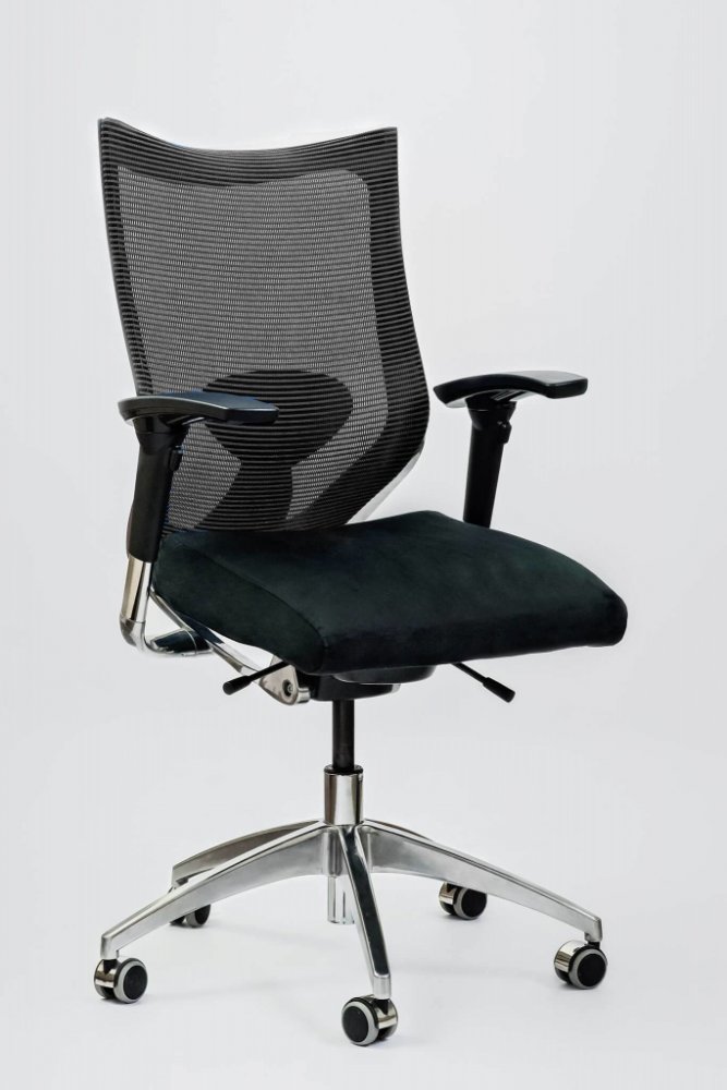 Elegantní konstrukce židle SPINERGO OFFICE je dokonale přizpůsobená anatomické stavbě páteře. Židle se vyznačuje značnou pevností díky ocelové konstrukci, která je kombinovaná s pevným plastem. Opěrák poskytuje maximální oporu v oblasti bederní a hrudní páteře, bederní opěrka je výškově nastavitelná. Volitelná je možnost doobjednání podhlavníku. Područky jsou vertikálně a horizontálně nastavitelné. Sedák je potažen kvalitní textilní látkou Sunrise, možné je také provedení v kožence Alcantara, vždy v černé barvě.