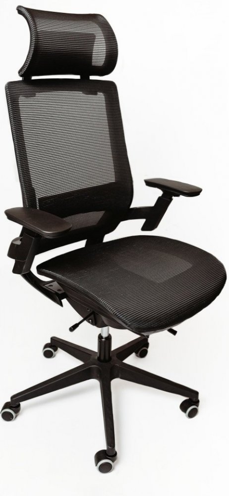 Opěrák zad je ergonomicky tvarovaný tak, aby poskytl maximální oporu v oblasti bederní, hrudní a krční páteře. Podhlavník je výškově nastavitelný. Područky jsou nastavitelné ve vertikálním i horizontálním směru.