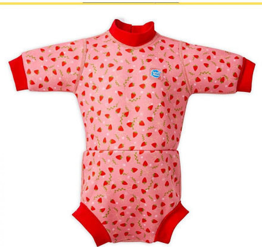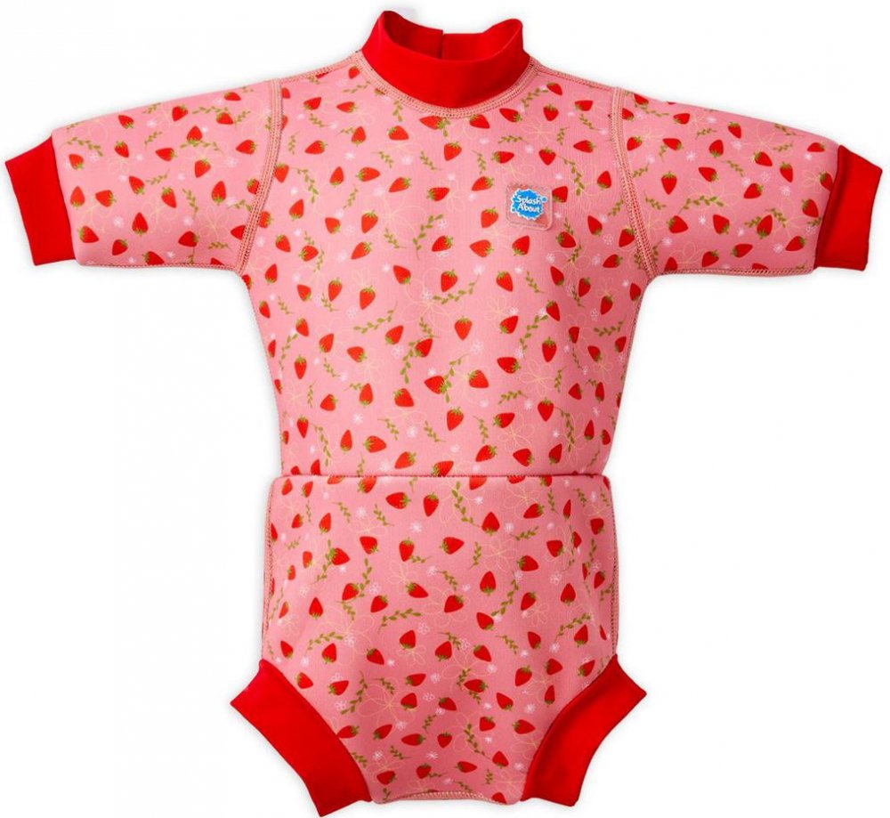 Pružné dětské neoprénové UV body s krátkým rukávem SplashAbout v červeném provedení je doplněné obrázky jahůdek. Je vhodné pro kojence, kteří začínají s plaváním - k moři, rybníku i do bazénu. Jeho funkce je stejná, jako u plavek Happy Nappy, avšak tělíčko zakryje a tím pádem i chrání celé. Zpevní ho a maličkého dobrodruha budete moci snadno držet, i když bude mokrý, což mu zajistí větší bezpečí. Miminko udrží v chladné vodě v teple a ochrání ho před sluníčkem - má ochranu UPF50+. Body s UV ochranou má integrovanou plínku, která moč propouští z 60% - plenka tedy nenasákne a neztěžkne, dobrodruh se stále bude pohybovat s lehkostí na brouzdališti i v moři! KonstrukceBody je vyrobené z měkkého a pružného neoprénu s tloušťkou 1mm, dvojitě prošité silným nylonem. Při tvorbě designu se přihlédlo ke zkušenostem instruktorů a rodičů, následně se při výrobě maximálně zohlednily potřeby dětí.Na zadní straně se nachází zip, který usnadňuje oblékání, mokré body také snadno sundáte. Střih je vytvořen tak, aby se malí dobrodruzi mohli volně pohybovat - současně je však celá horní polovina těla dokonale chráněna před vnějšími vlivy.MateriálBody je příjemně měkké a pružné.Složení: 100% neopren s vnější vrstvou ze 100% polyesteru. Lemy: 80% nylon, 20% elastan.