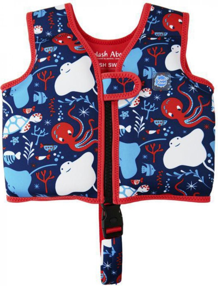 Plavecká vesta Go Splash je skvělá pomůcka pro plavání, která drží děti ve správné plavecké pozici bez zbytečného objemu. Součástí je pohodlný pásek, který zabraňuje vyjíždění vesty nahoru. Spolu s pevným zipem, který zajišťuje bezpečné uchycení, nabízí tato plavecká vesta zvýšenou bezpečnost a pohodlí. Je navržena pro celodenní nošení, rychle schne a nezpůsobuje odření, ani když je mokrá. Její praktičnost a snadné použití ji činí oblíbenou volbou pro rodiče a mladé plavce. Vesta obsahuje nevyjímatelné plováky, které jsou ploché, což usnadňuje jejich balení do kufrů nebo plaveckých tašek. Plavecká vesta Splash About Go Splash je vyrobena z rychleschnoucího, vysoce kvalitního neoprenu, je odolná vůči chlóru i slunci, je velmi kvalitní. Ideální pro podporu plaveckého vývoje vašeho dítěte, na dovolenou, pro použití v bazénu nebo moři. Plavecká vesta Go Splash poskytuje vztlak, zatímco umožňuje dětem zdokonalovat jejich plavecké techniky a hledat rovnováhu ve vodě.