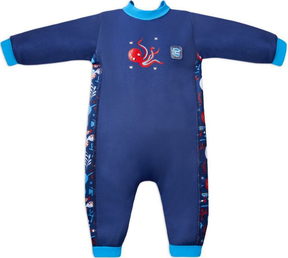 Tato jedinečná dětská neoprenová kombinéza byla navržena tak, aby dětem poskytovala maximální teplo během plavání. Měkký a pohodlný neoprenový obleček zakryje celé tělo a udrží tak děti v teple ve vodě či při chůzi z chladné šatny. Je ideální pro kojence s citlivou pokožkou, nepropustí žádný krém. Jedná se o teplou kombinézu s fleecovou podšívkou. Tato jedinečná dětská neoprenová kombinéza byla navržena tak, aby dětem poskytovala maximální teplo během plavání. Měkký a pohodlný neoprenový obleček zakryje celé tělo a udrží tak děti v teple ve vodě či při chůzi z chladné šatny. Je ideální pro kojence s citlivou pokožkou, nepropustí žádný krém. Jedná se o teplou kombinézu s fleecovou podšívkou.Neoprenová kombinéza je podšitá super měkkým fleecem. Celá se rozepíná na zádech, takže se dobře obléká i vysvléká. Kombinéza vytváří bariéru mezi tělem a okolní vodou, která se pak zahřívá vlastním tělesným teplem dítěte. To pomáhá miminkům udržovat regulovanou tělesnou teplotu, zatímco měkká fleecová podšívka jim dodává pocit pohodlí a tepla. Manžety kolem zápěstí a kotníků pomáhají udržovat teplo. Do kombinézy můžete použít i Plavky Happy.Výborně taktéž ochrání před sluncem. S protisluneční ochranou SPF50+, ochrání rizikové oblasti jako jsou krk a ramena.Díky suchému zipu na zádech se snadno obléká a vysléká. Kvalitní zpracování, které nevybledne. Materiál je odolný vůči chlóru.Velikosti: Věk je pouze orientační (každé dítko je jiné, vybírejte podle rozměrů). Pokud se rozhodujete mezi 2 velikostmi, vezměte tu větší.Vel. S (0 - 3 měs): hrudník: 50 - 54 cm, délka od ramene po rozkrok: 30 - 33 cm, délka: 48 cmVel. M (3 - 6 měs): hrudník: 52 - 56 cm, délka od ramene po rozkrok: 33 - 36 cm, délka: 51 cmVel. L (6 - 12 měs): hrudník: 56 - 60 cm, délka od ramene po rozkrok: 37 - 39 cm, délka: 54 cmVel. XL (1 - 2 roky): hrudník: 60 - 64 cm, délka od ramene po rozkrok: 40 - 43 cm, délka: 60 cmSplash About je přední světový výrobce plaveček a plaveckých potřeb z Velké Británie. Všechny výrobky jsou testovány v extrémních podmínkách, aby byla zajištěna kvalita výrobků. Na trhu působí již více jak 25 let. Produkty jsou známé po celém světě a získali nespočet ocenění. Složení: 100% TPU s vnější vrstvou ze 100% polyesteru, lemy: 80% nylon, 20% elastanÚdržba: pouze ruční praní ve studené, čisté vodě