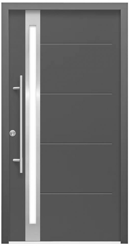 Vchodové dveře Splendoor Thermodoor PLUS SP30A kombinují moderní design s vynikajícími technickými vlastnostmi a jsou ideální volbou pro zákazníky, kteří požadují vysokou tepelnou izolaci a dbají na ekologii. Dveře nabízejí efektivní tepelnou izolaci díky sofistikované konstrukci, která zahrnuje tepelně oddělenou hliníkovou zárubeň s přídavným tepelným příkonem a stavební hloubkou 70 mm, tepelně izolované ocelové dveřní křídlo se dvěma úrovněmi těsnění a kompozitním rámem. K tomu přispívá i tepelně oddělený hliníkový práh, což vede k výraznému snížení nákladů na vytápění. Skleněný prvek ze saténového trojitého izolačního zasklení nejen zajišťuje elegantní vzhled, ale také přivádí přirozené světlo do chodby, čímž pomáhá minimalizovat spotřebu energie. Vynikající hodnota tepelné izolace (Ud = 0,79 W/m²K) činí tyto dveře ideálním řešením zejména pro nízkoenergetické domy. Pro maximální bezpečnost je dveřní prvek vybaven vícebodovým zamykacím systémem se čtyřmi pevnými otočnými čepy, třemi stabilními, třírozměrně nastavitelnými závěsy a šesti pákovými západkami na straně pantů, což poskytuje spolehlivou ochranu před nezvanými hosty.