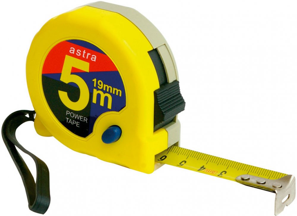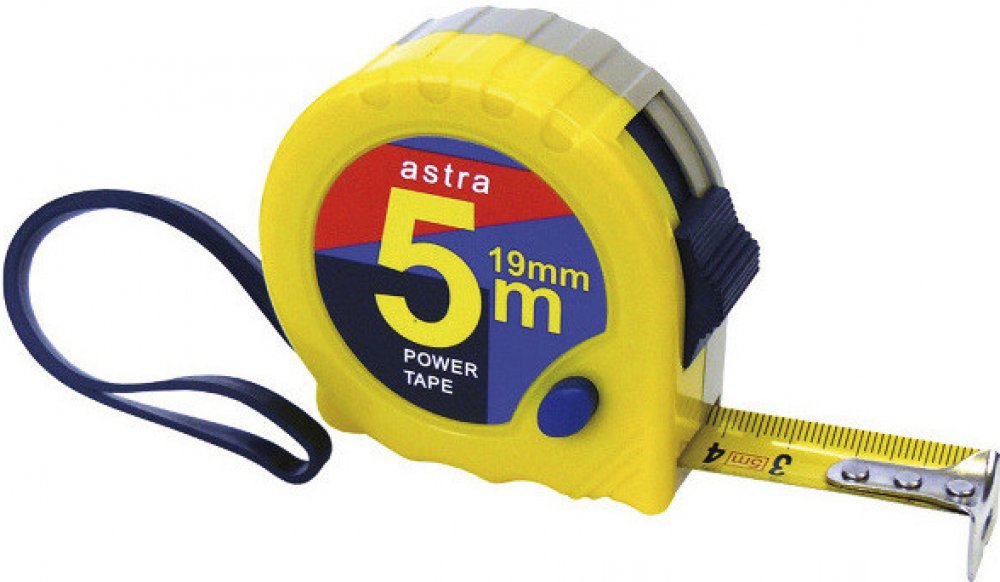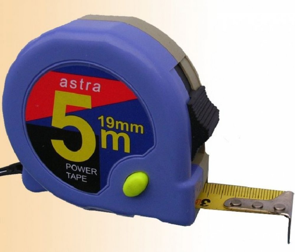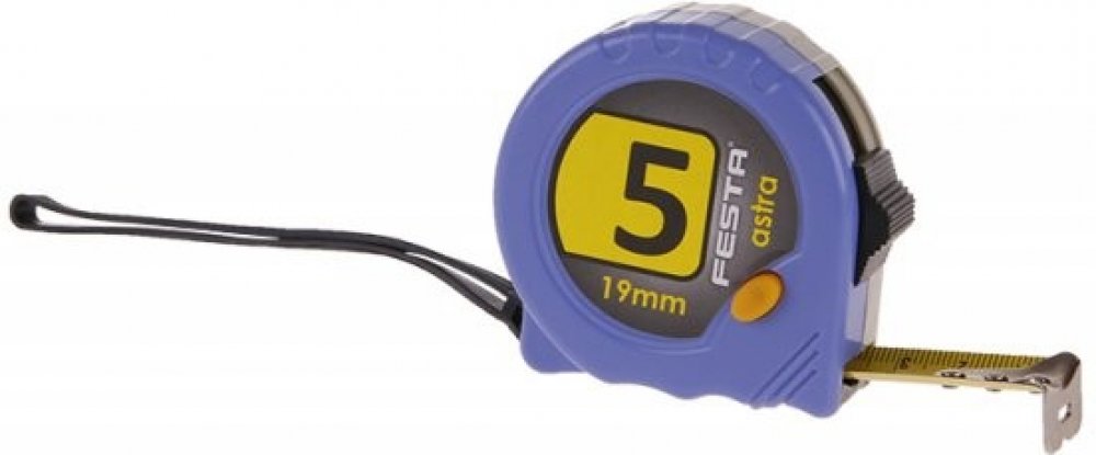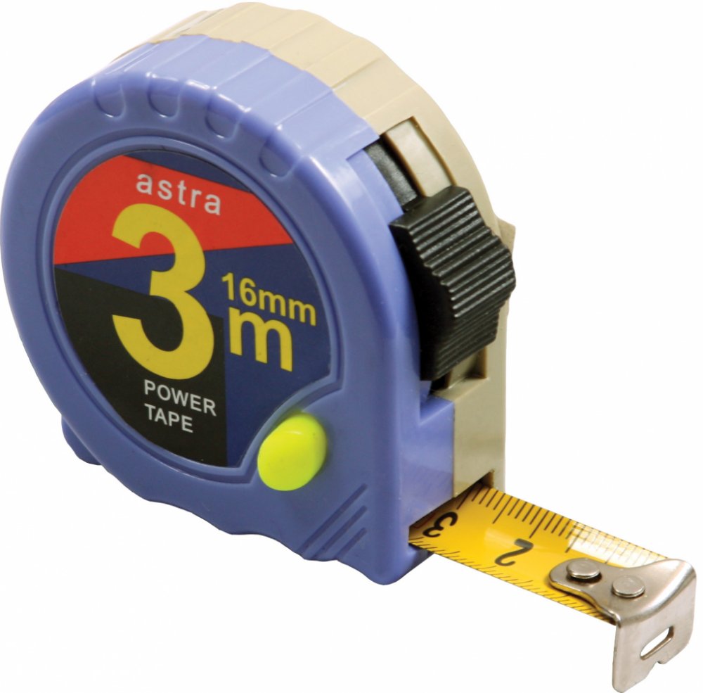 Kvalitní svinovací metr ASTRA s kalenou páskou a dobře čitelnou stupnicí. Plastové tělo je vybaveno kovovou pžezkou pro uchycení na opasek či okraj kapsy a poutkem pro navlečení na ruku. Metr má dvě pojistky pro aretaci pásky při vysunutí, klasickou ve formě posuvného tlačítka a dočasnou blokaci pouze pro dobu přidržení tlačítka na boku těla metru.