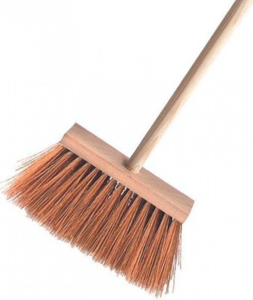 Koště s dřevěnou holí o rozměrech 25 x 6 cm je praktický úklidový nástroj vhodný pro zametání menších ploch, například v domácnosti, na verandě, v dílně nebo na terase.