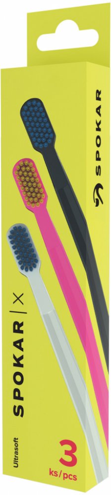 Kartáček SPOKAR X navrhl přední český designér Petr Novague na základě aktuálních doporučení stomatologických odborníků. Malá hlava je hustě osazena jemnými vlákny, která účinně odstraňují zubní plak a jsou šetrná k dásním. Držadlo s průřezem tvaru X pomáhá držet kartáček při čištění