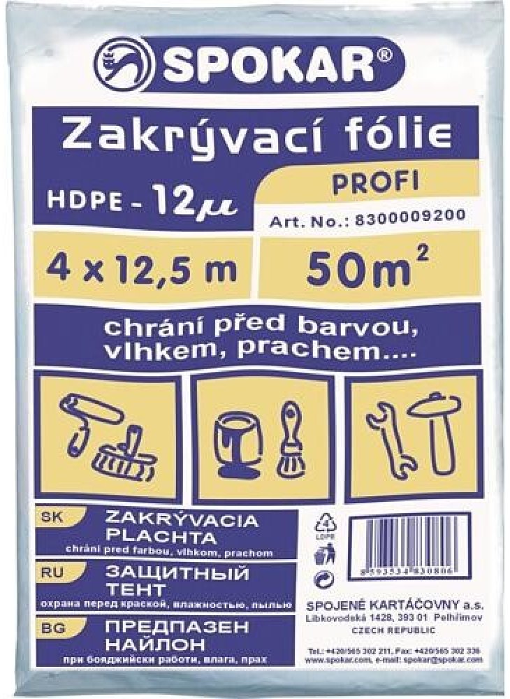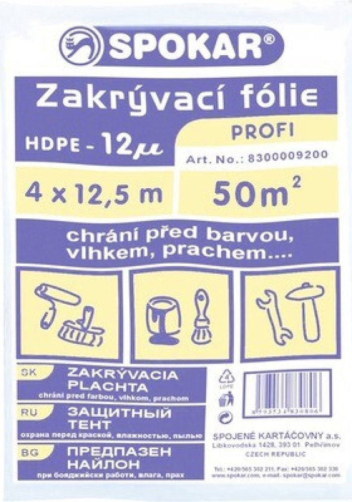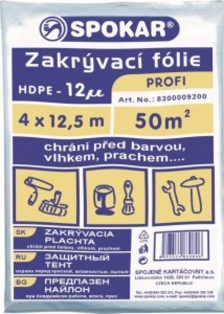 SPOKAR Zakrývací fólie 4 x 12,5 m, HDPE 12µ PROFI