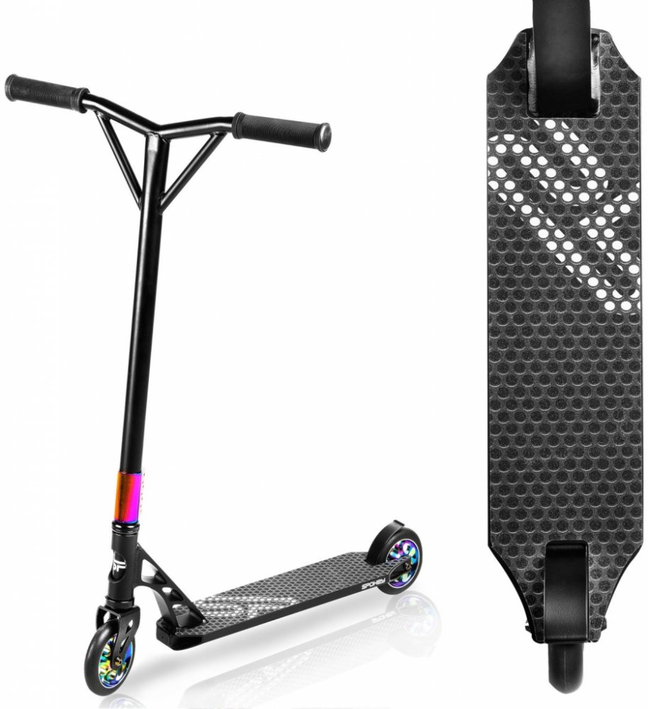 Koloběžky Spokey jsou určeny pro nejnáročnější uživatele. Víme, jak důležitá je kvalita a bezpečnost při extrémní jízdě, proto klademe důraz, aby byly naše freestylové koloběžky vyrobeny z těch nejsilnějších materiálů. Koloběžky tak vydrží vyšší zatížení při provádění triků a při jízdě na překážkách.
