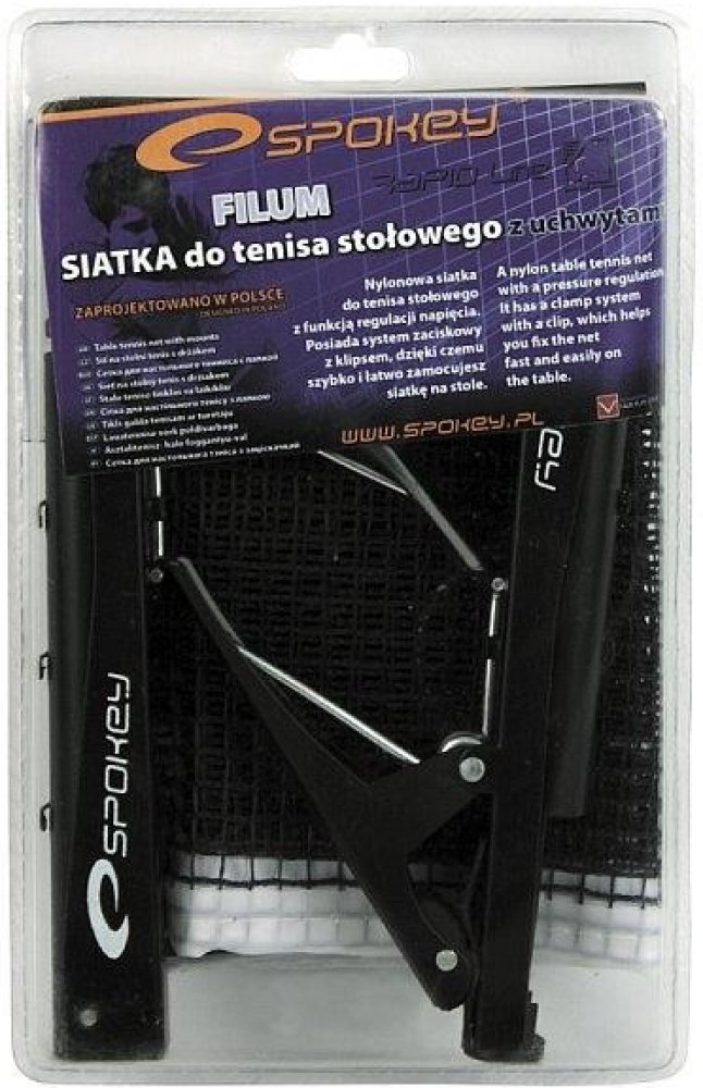 Síť na stolní tenis Spokey FILUM je vyrobena z plastu a je to skvělá volba pro ty, jenž hledají řešení, které jim umožní hrát stolní tenis doma. Spokey FILUM je kompletní sada obsahující všechny potřebné prvky k upevnění sítě ke stolu: síť s lankem a sloupky s integrovanými klipy. Po složení síť nezabírá mnoho místa, díky čemuž se snadno skladuje.