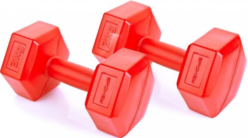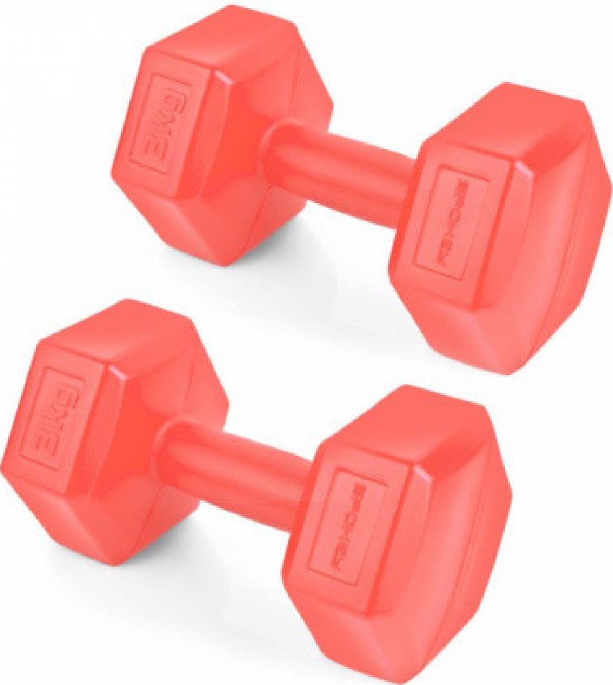Kompletní pár šestihranných plastových činek plněných cementem pro domácí cvičení