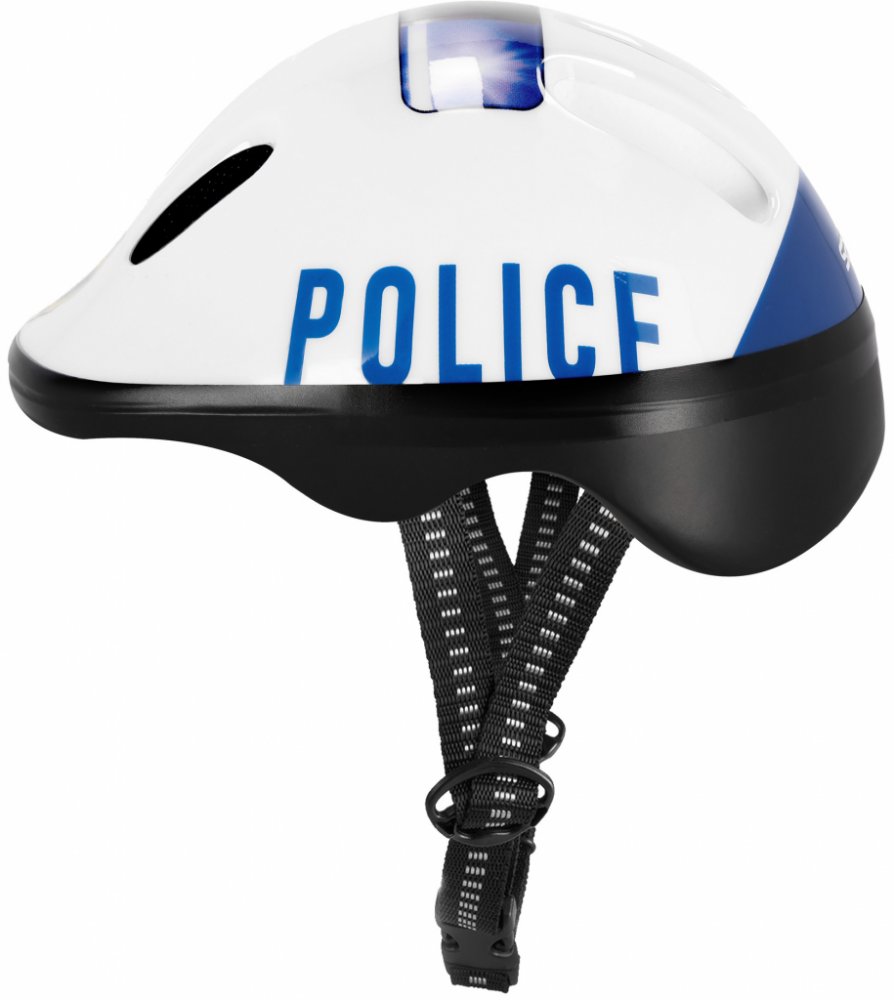 Přilba Spokey POLICE je určena nejmenším uživatelům. Je zhotovena z lehkých a bezpečných materiálů. Přilba má certifikát CE, vyhovuje normě EN1078. Tyto přilby jsou dokonalé pro ochranu hlavy při jízdě na bruslích, skateboardu, kole či koloběžce.