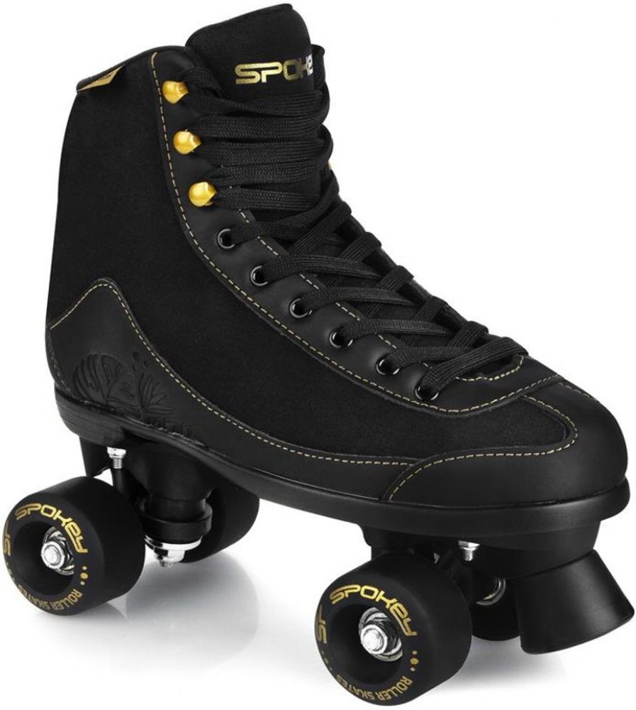 Trekové brusle Spokey RAVINA jsou nejen kvalitní a pohodlné ale mají skvělý a vytříbený design! Černou barvu brusle doplňují zlaté estetické doplňky. Typ zapínání – tkaničky, zajišťují správnou polohu nohy v botě během jízdy.