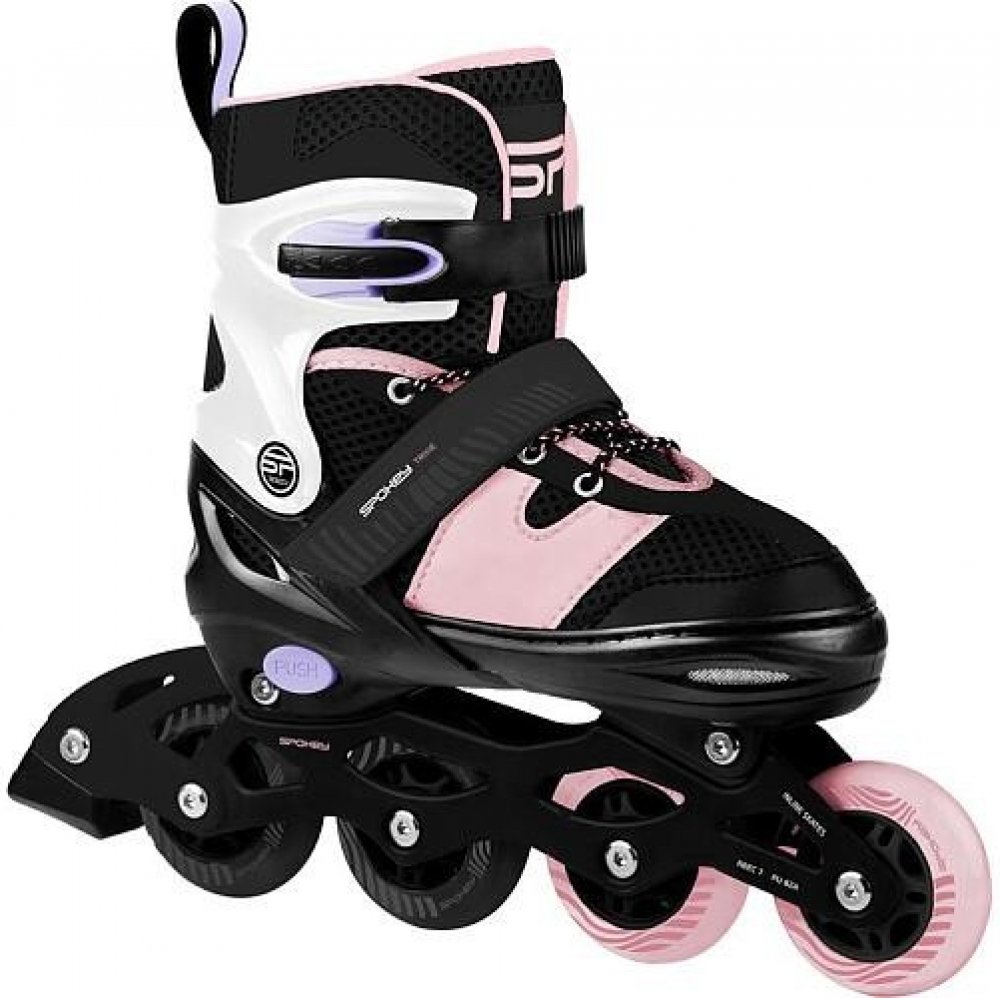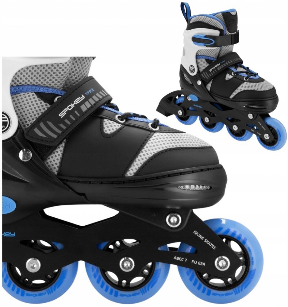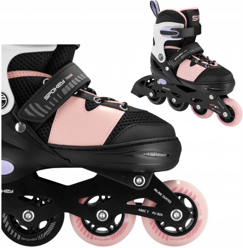 Dětské kolečkové brusle Spokey TRIXIE jsou ideální volbou pro začátečníky i pokročilé mladé bruslaře. Díky nastavitelné velikosti rostou brusle s nohou vašeho dítěte, což zajišťuje dlouhodobé používání a perfektní přizpůsobení. Unikátní systém zapínání (přezka, suchý zip a šněrování) zaručuje optimální držení nohy, pohodlí a bezpečnost při každé jízdě.