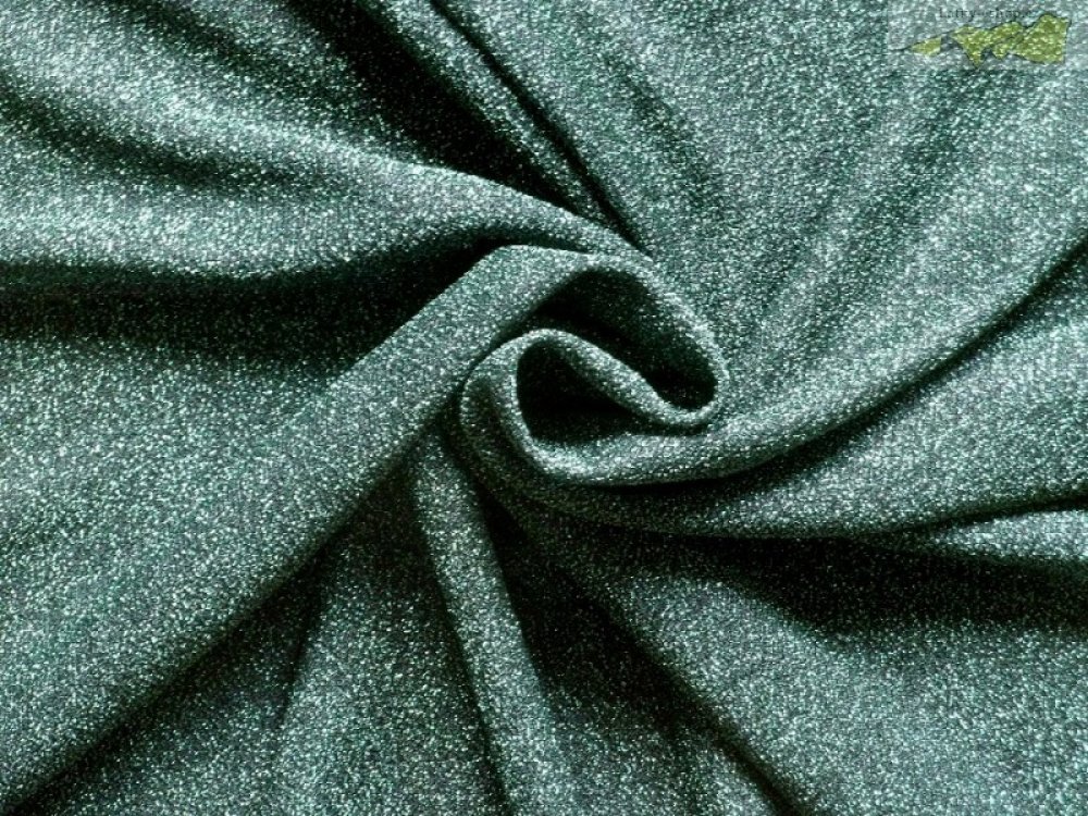 tato tmavě zelená společenská elastická látka s drobnými glittery je z italské kolekce. Je splývavá a třpytivá, vhodná na šaty, sukně, halenky, tuniky, fitness oděvy, ale také pro divadelní a kinematografickou oblast, protože se používají k tvorbě mnoha scénických kostýmů. Při použití na šaty a sukně je nutné podšití materiálu.