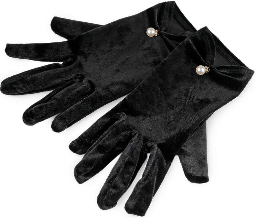 Sametové společenské rukavice využijete na ples nebo na čaj o páté, skvěle doplní i maškarní kostým nebo stylovou retro párty. Jsou velice elegantní, ozdobené přívěskem perly s rondelkou s broušenými kamínky. Jejich krátký střih je moderní a praktický.