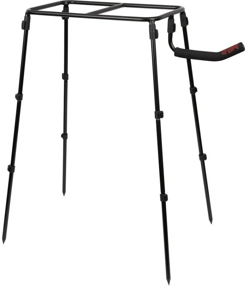 Použití Dvojitý stojan jednoduše rozložíte, nastavíte požadovanou výšku a umístíte do něj dva kbelíky s návnadou. Díky pevnému systému zámků a stabilní konstrukci máte vše potřebné v dosahu, aniž byste se museli ohýbat nebo přerušovat krmení.