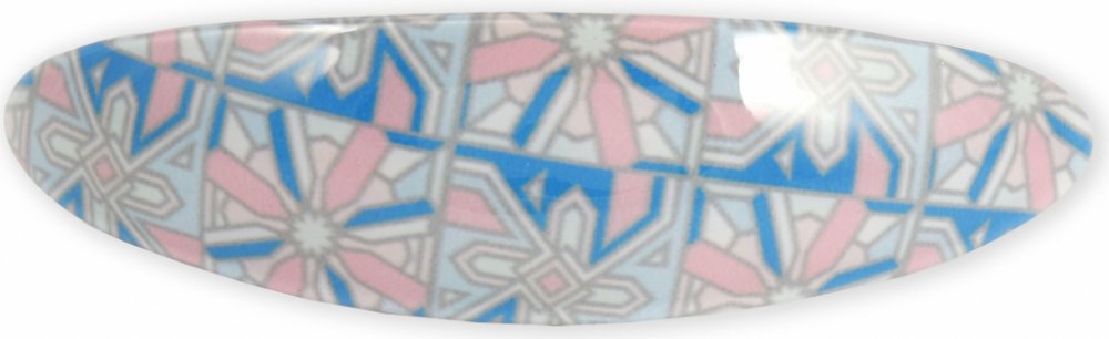 Oválná barevná spona se vzorem a francouzským mechanismem zapínání.