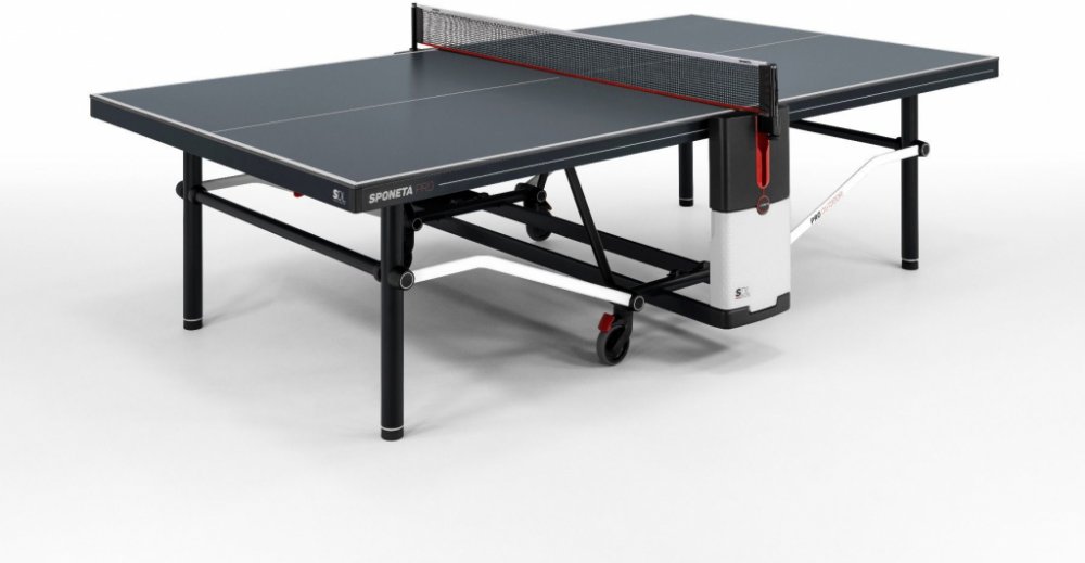 SPONETA Design Line určuje nové standardy z hlediska elegance, funkčnosti a radosti z hraní. Veškeré naše technické know-how v kombinaci s nejmodernějšími technologiemi se spojuje v jedinečném designu s vysokými standardy kvality pro optimální zábavu. Pro Edition byl navržen speciálně pro moderní a otevřené prostředí. Vysoce kvalitní povrchová úprava rámu v barvách černá a bílá. Designový stůl na stolní tenis SPONETA Design Line - Pro Outdoor pro venkovní - exteriérové použití. Technická data: - barva desky stolu šedá - stůl pro venkovní použití - rozměr stolu 274 x 185 x 76 cm (d x š x v) - hrací deska 10 mm melamin - 10 let záruka na desku stolu - okrajový lub 60 mm - tyče nohou o průměru 60 mm - skládací systém se zajištěním - možnost pohybu stolu na 4 gumových kolečkách o průměru 125 mm - dvě kolečka s brzdou - zadní nohy s možností nastavení výšky až o 25 mm - složení umožňuje hru jednoho hráče - SMS-zámek (Smart Manual System) jednoduchý systém rozložení a složení s bezpečnostním zajištěním - vyroben podle normy EN 14468-1 třída C - rozměr pro uskladnění 185 x 64 x 159 cm - stůl je vybaven držákem síťky a výškově nastavitelnou síťkou s možností napnutí - stůl je dodáván na 95% sestaven, stačí pouze rozbalit, přišroubovat boční boxy, síťku a můžete začít hrát - hmotnost 113 kg - exteriérové provedení - odolné proti povětrnostním vlivům a UV záření - vyrobeno v Německu