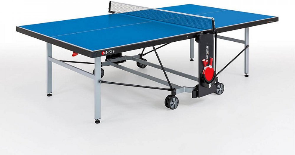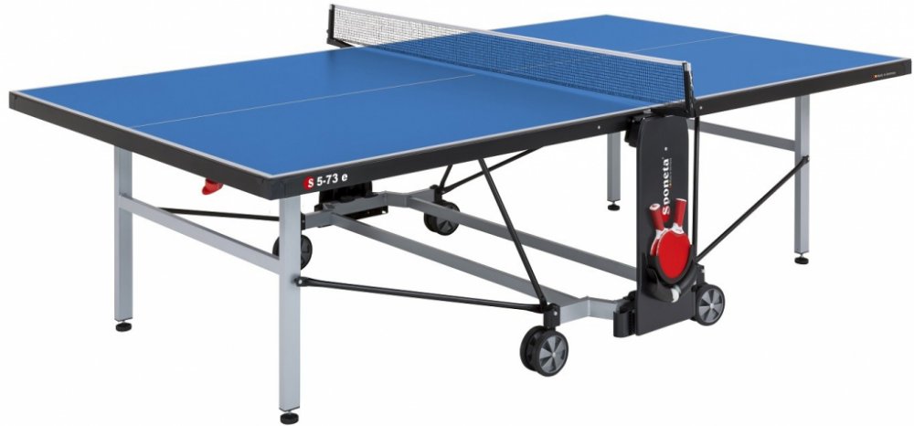 Stůl na stolní tenis Sponeta S5-73 e v modré barvě pro venkovní použití.Jedná se o kvalitu, který je srovnatelná s klasickými stoly s dřevěnými deskami pro vnitřní použití. Pozinkovaný rám spolu se 6 mm silnou plastovou deskou z melaminu, která má vlastnosti klasické dřevěné desky, umožňují stálé umístění stolu venku (přesto doporučujeme pro prodloužení životnosti nechávat stůl venku pouze od jara...
